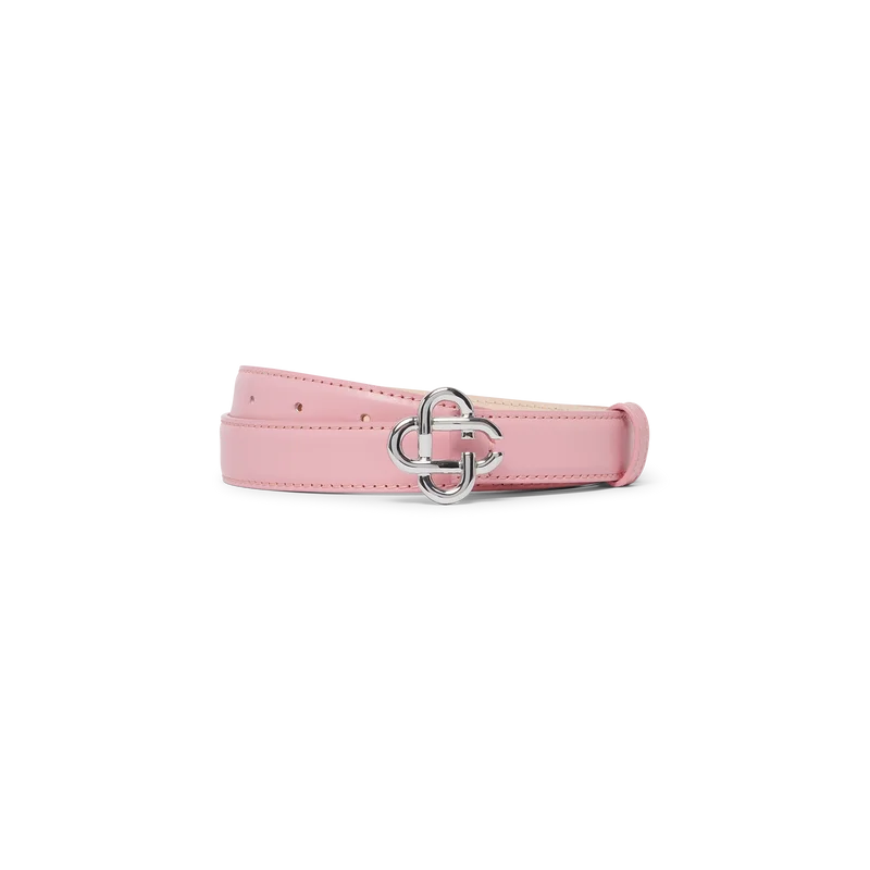 Der rosa Cc-Logo-Schnallengürtel für Damen verfügt über einen Riemen aus italienischem Kalbsleder. Abgerundet wird er durch die für das Haus charakteristische, ineinander verschlungene Cc-Schnalle aus versilbertem Messing.