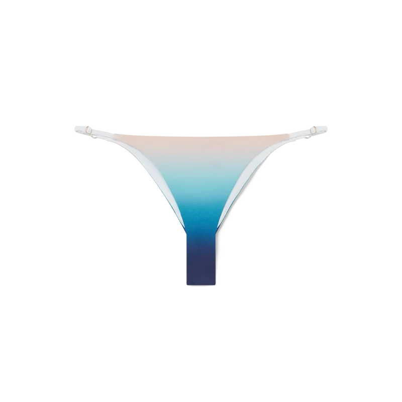 Das Bikini-Höschen „Gradient“ ist ein bedrucktes Modell aus einem atmungsaktiven Polyester-Mischgewebe, das die Farbverläufe dieser Saison aufgreift. Abgerundet durch kontrastierende weiße Bindebänder – dieses Teil ist dazu gedacht, mit dem passenden Bikini-Oberteil getragen zu werden.