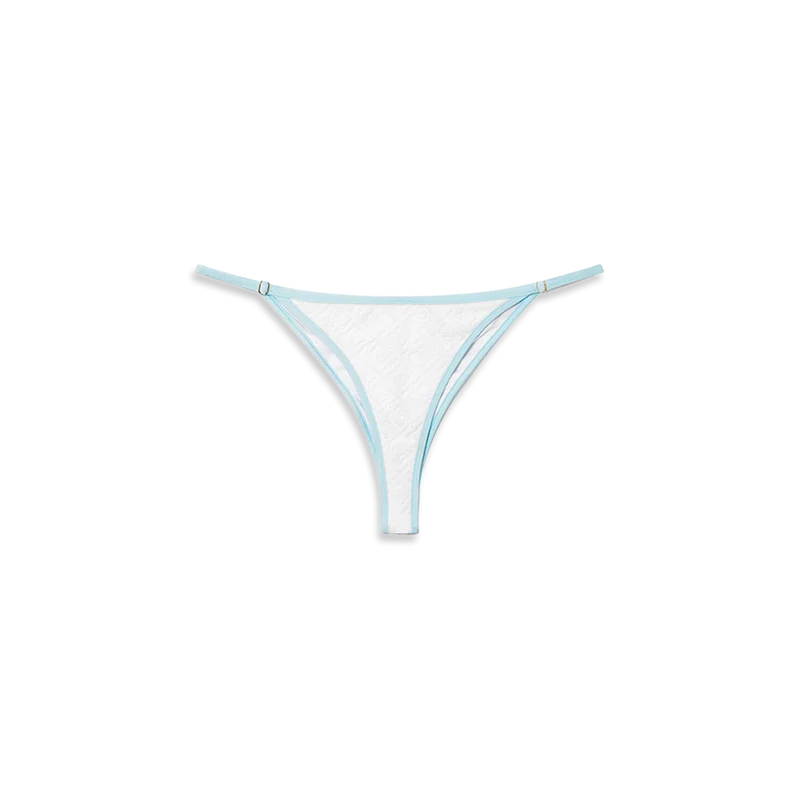 Das Jacquard-Monogramm-Bikinihöschen ist ein bedrucktes Modell aus atmungsaktivem Polyester-Mischgewebe mit dem charakteristischen Diamond Monogram des Hauses. Abgerundet durch hellblaue Paspeln – dieses Teil ist dazu gedacht, mit dem passenden Bikini-Oberteil getragen zu werden.