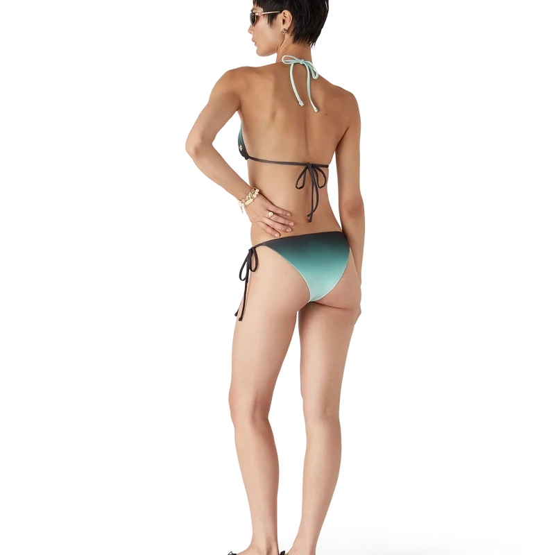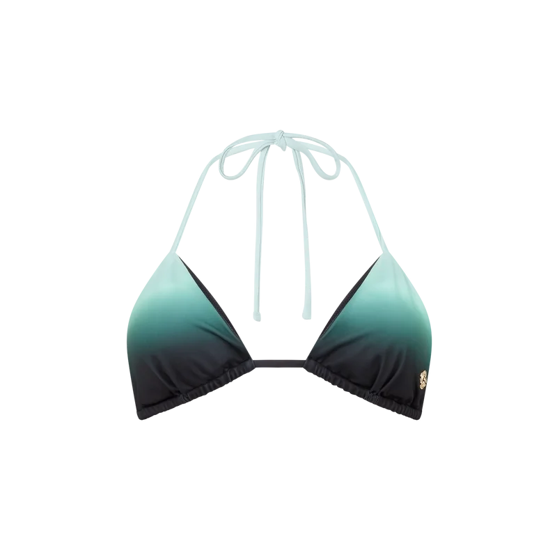 Das Gradient Bikini-Oberteil ist ein bedrucktes Design aus atmungsaktivem technischem Badematerial mit einem mintfarbenen Farbverlauf, der an die Farbgebung des Park Hyatt angelehnt ist, einem legendären Hotel in Tokio, dessen Inneneinrichtung Mint und Schwarz aufgreift. Mit Bindebändern am Nacken und am Rücken – dieses Teil ist dazu gedacht, mit dem passenden Bikini-Unterteil getragen zu werden.
