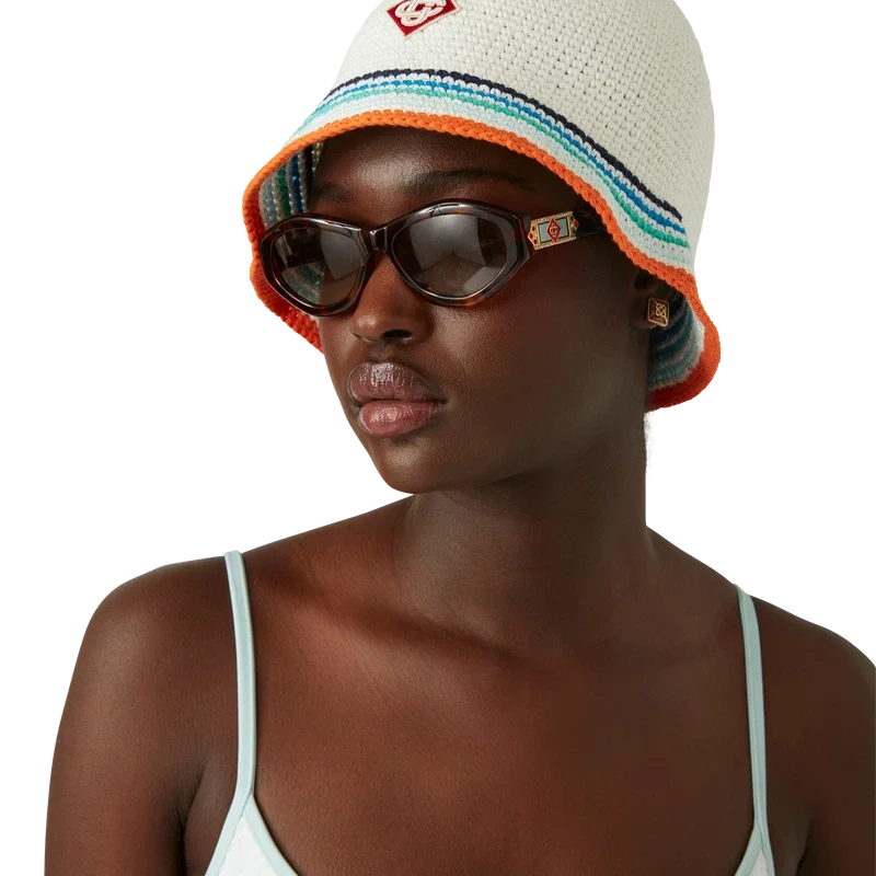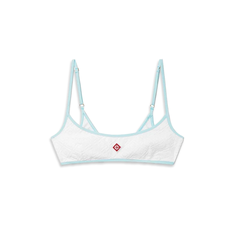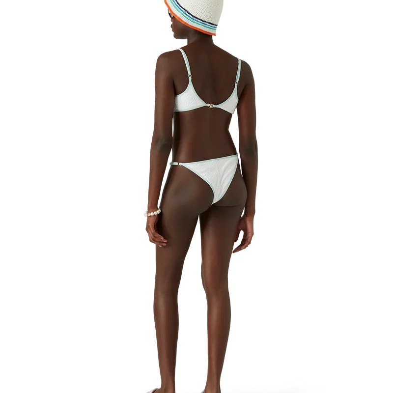 Das Jacquard-Monogram-Bikini-Oberteil ist ein bedrucktes Modell aus einem atmungsaktiven Polyester-Mischgewebe, das mit dem charakteristischen Diamond Monogram des Hauses verziert ist. Abgerundet durch hellblaue Spaghettiträger und Besätze – dieses Modell ist dazu gedacht, zusammen mit dem passenden Bikini-Unterteil getragen zu werden.