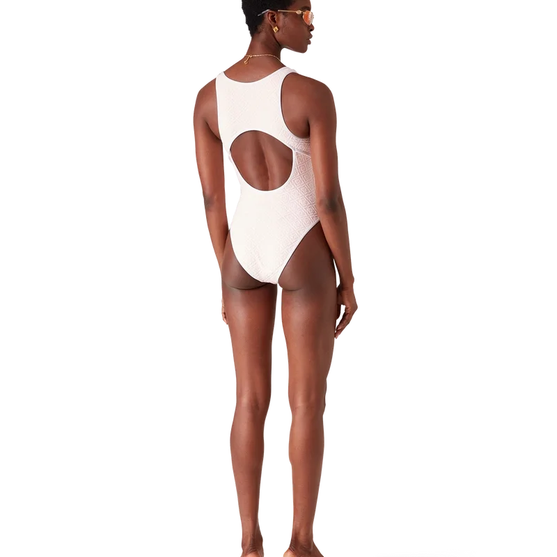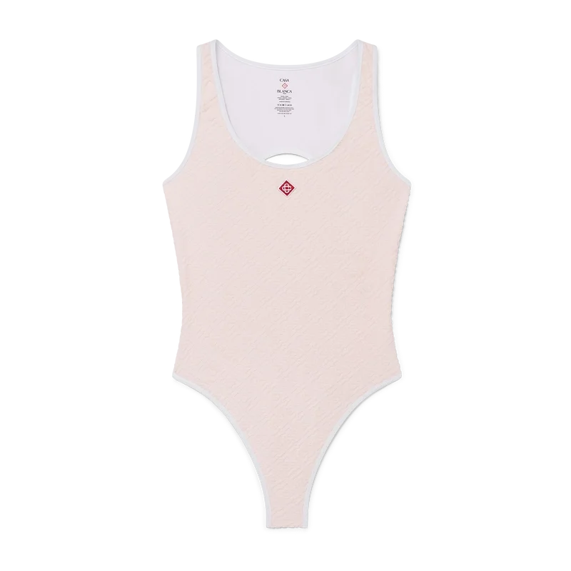 Der Monogram-Badeanzug ist ein Einteiler mit dem Monogram-Print des Hauses und dem charakteristischen Diamant-Logo. Abgerundet durch kontrastfarbene Kanten, hoch geschnittene Beine, einen Cut-Out am Rücken und einen U-Ausschnitt.