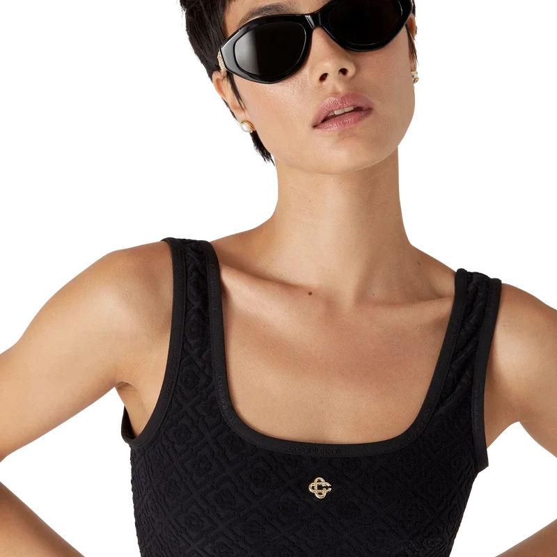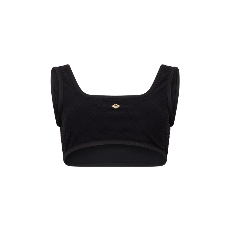 Das Monogram Jacquard Bikini-Oberteil ist aus einem atmungsaktiven technischen Badestoff gefertigt und mit dem vergoldeten, charakteristischen ineinander verschlungenen CC-Nieten-Logo des Hauses versehen. Mit Trägern versehen – dieses Modell ist dazu gedacht, mit dem passenden Bikini-Unterteil getragen zu werden.