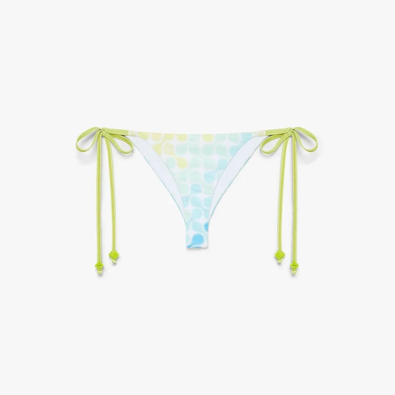 Die Optic Drop String Beaded Bikini-Hose ist ein bedrucktes Modell aus atmungsaktivem Stoff mit dem saisonalen Tennis-Tile-Motiv aus sich kreuzenden Logos und Tennisbällen, die durch den saisonalen Farbverlauf miteinander verschmelzen. Abgerundet durch String-Verschlüsse und die für das Haus typische, ineinander verschlungene CC-Logo-Niete. Entworfen, um mit dem passenden Bikini-Oberteil getragen zu werden.