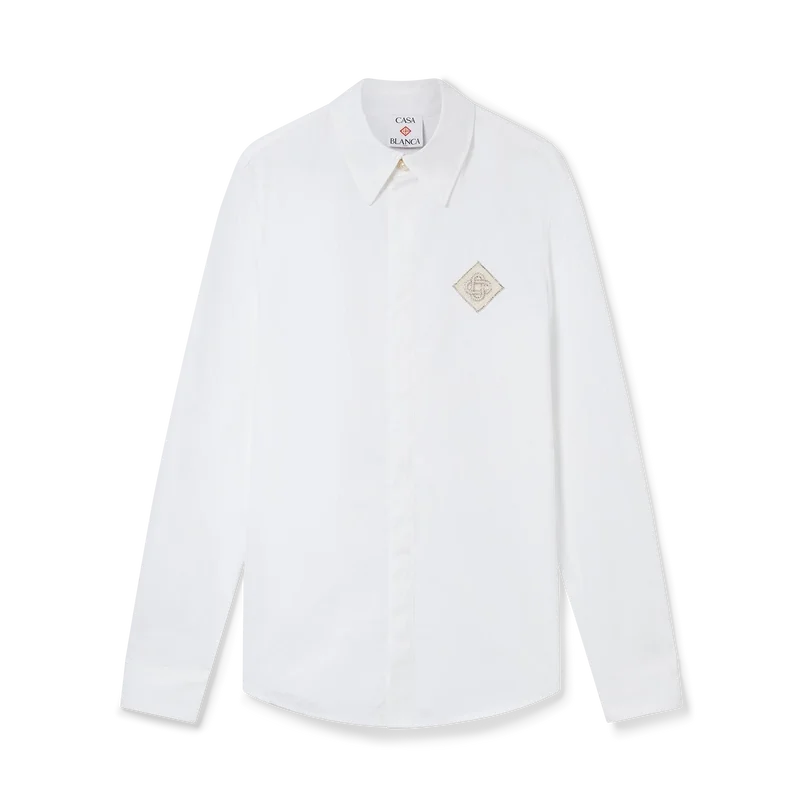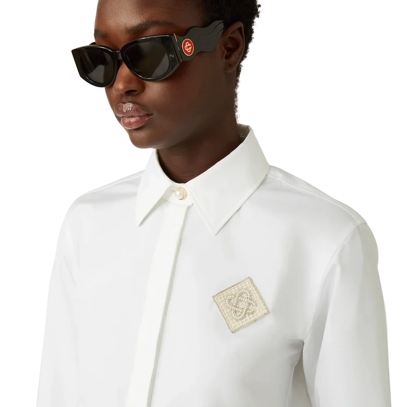 Das Baumwollhemd mit Pearl-Diamant-Patch ist ein langärmeliges Modell aus Baumwollstoff mit dem für diese Saison neu interpretierten charakteristischen Diamant-Logo des Hauses. Abgerundet wird es durch einen klassischen Spitzkragen, charakteristische goldgeränderte Perlenknöpfe am Kragen und an den Manschetten sowie einen verdeckten Knopfverschluss.