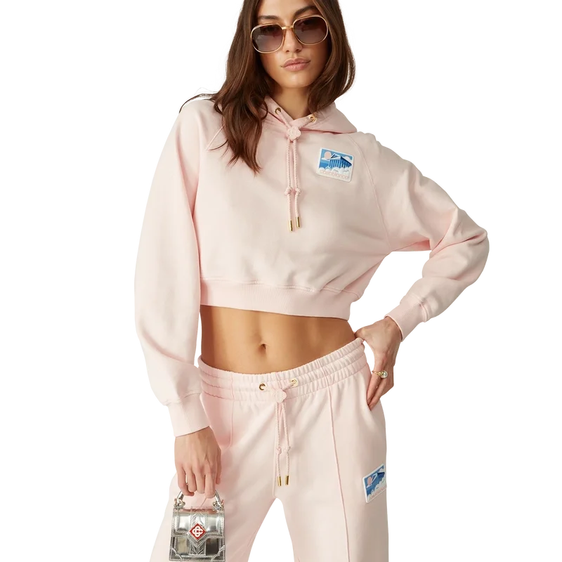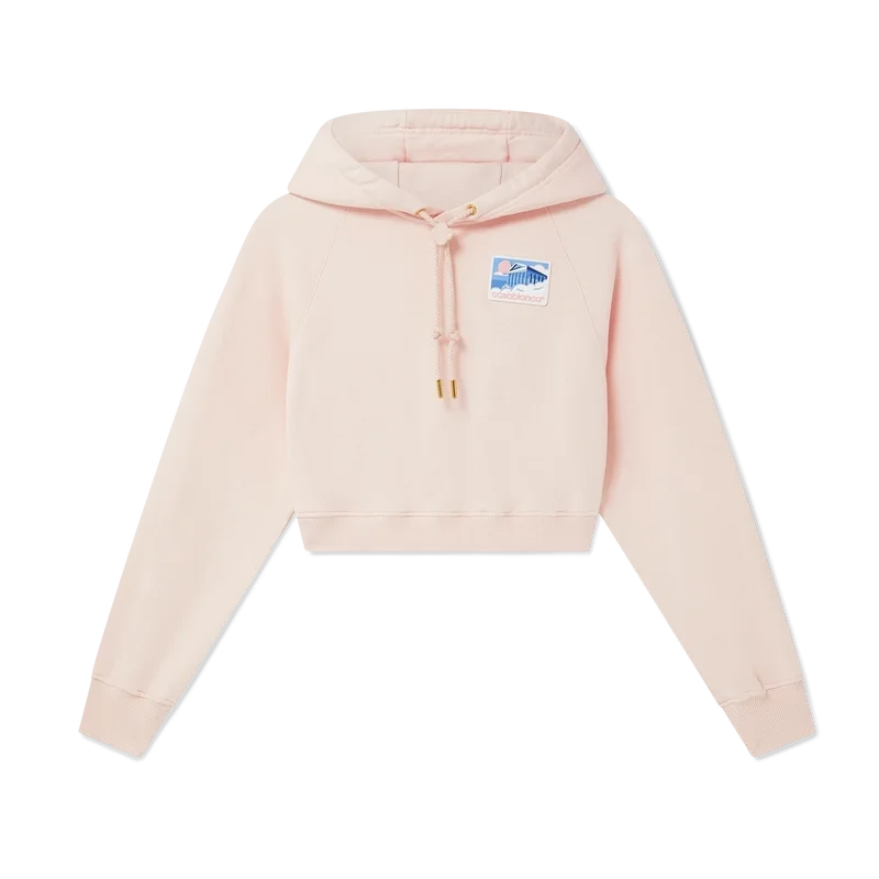 Das Greek Temple Cropped Hooded Sweatshirt ist aus Bio-Baumwolle gefertigt und verfügt über einen Silikon-Aufnäher. Abgerundet wird es durch eine Kapuze, einen goldfarbenen Kordelzug mit Marken-Stopper für sicheren Verschluss sowie gerippte Bündchen und Saum.