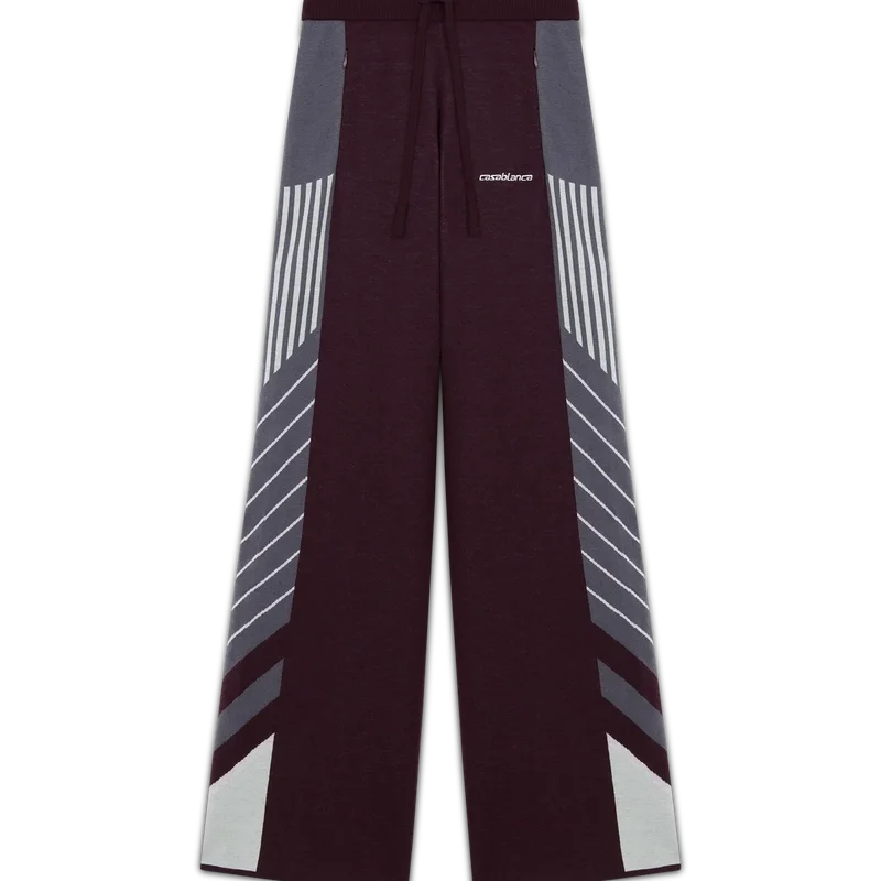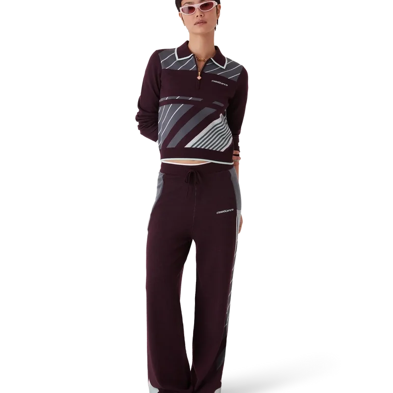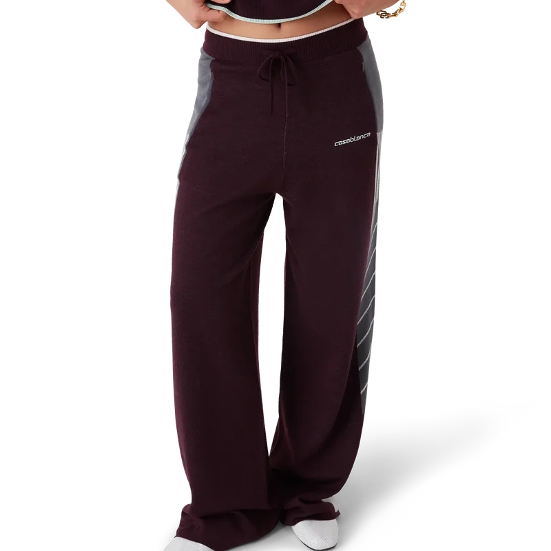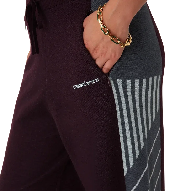 Die Diagonal Tennis Merino-Hose ist ein Strickmodell mit diagonalen Sportstreifen und einem gestickten Casablanca-Logo. Abgerundet durch einen elastischen Bund, seitliche Eingrifftaschen mit Reißverschluss und einen Kordelzug.