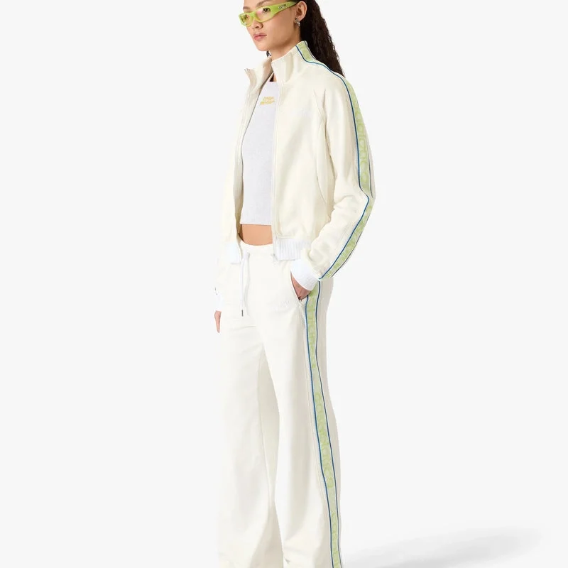 Die weiße Laurel-Jogginghose ist ein Modell mit geradem Bein und dem charakteristischen Casablanca-Logo des Hauses. Abgerundet wird sie durch einen elastischen Bund, einen Kordelzug, Seitentaschen in den Beinen, Laurel-Tape-Details an den Seiten und eine lockere Silhouette. Entworfen, um mit der passenden Joggingjacke getragen zu werden.