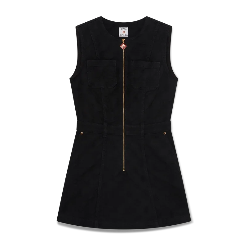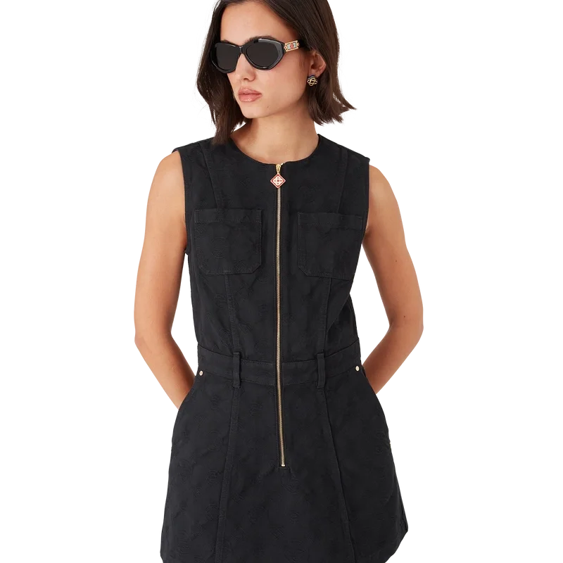Das Denim-Monogramm-Kleid mit Reißverschluss ist ein ärmelloses Minikleid im A-Linien-Stil mit dem saisonalen Honeydew-Logo-Print. Dieses Muster unterscheidet sich von unseren anderen Monogrammen, da es einzigartige Formen zu einem einheitlichen Muster kombiniert. Es handelt sich eher um ein ikonisches Design. Abgerundet durch Details mit Ziernähten, einen Reißverschluss mit dem charakteristischen Diamant-Logo-Reißverschlusszug des Hauses, Brusttaschen, schräge Taschen, aufgesetzte Gesäßtaschen, einen Bund mit Gürtelschlaufen und einen kontrastierenden Logo-Aufnäher mit dem Diamond Monogram des Hauses.