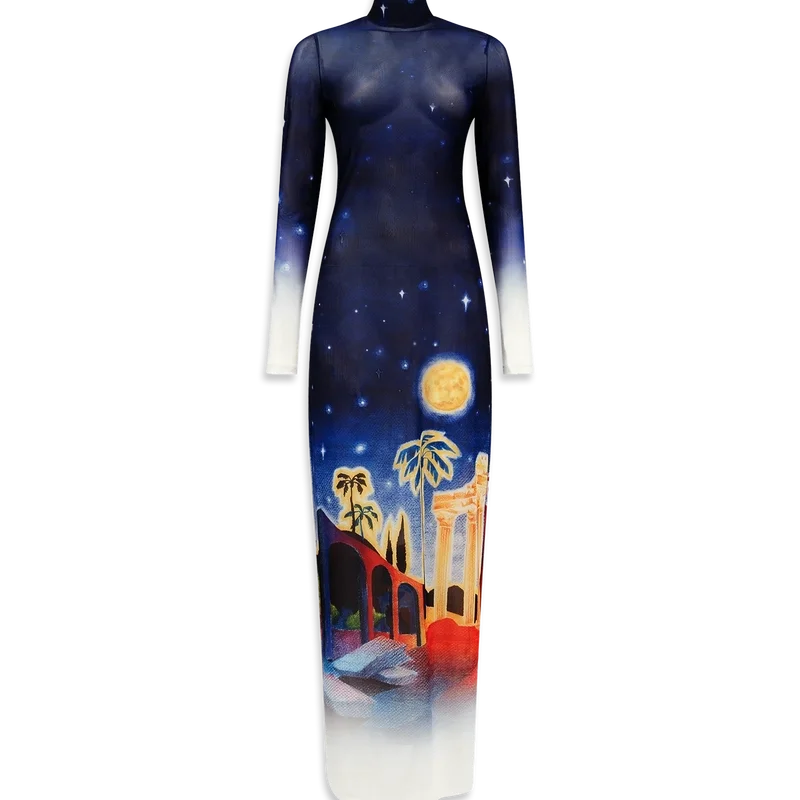 Midnight Acropolis Mesh-Kleid