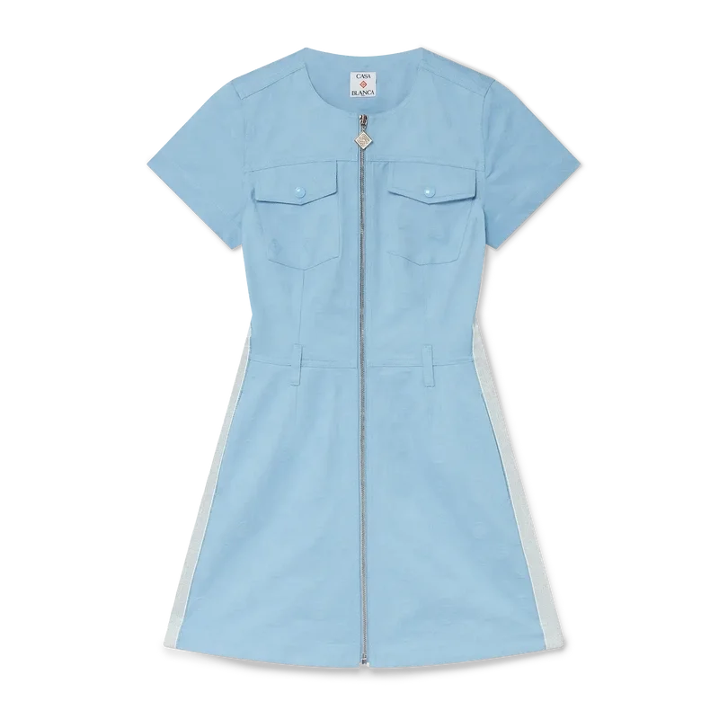 Das Monogram-Kleid ist ein kurzärmeliges A-Linien-Minikleid mit dem ikonischen Monogram-Print des Hauses. Abgerundet durch einen Reißverschluss vorne mit dem charakteristischen Diamant-Monogram-Reißverschlusszug des Hauses, Gürtelschlaufen, Nahttaschen, Pattentaschen und Seiden-Einsätzen.