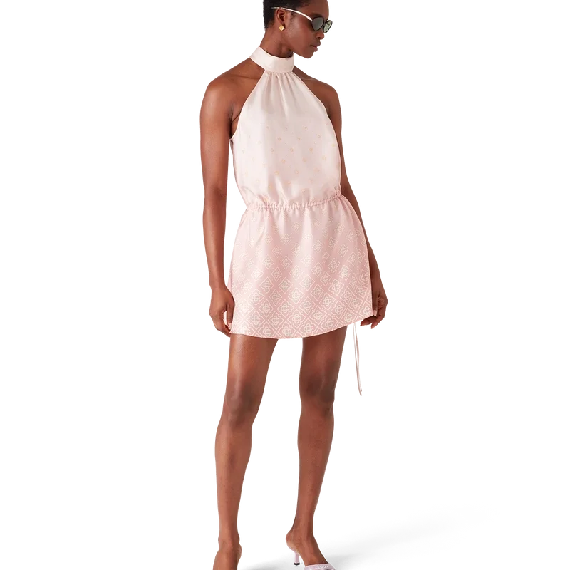 Das Monogram Degrade Seidenkleid ist ein ärmelloses Minikleid mit dem ikonischen Monogram des Hauses in Farbverlaufstönen. Abgerundet durch einen Neckholder-Ausschnitt, einen verdeckten Reißverschluss, eine locker geraffte, tief sitzende Taille und Kordelverschlüsse an den Seiten.