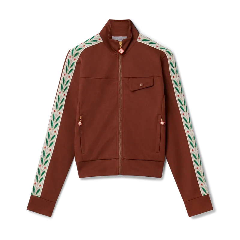 Die Laurel Trainingsjacke ist ein edles Sportbekleidungs-Basic mit dem charakteristischen Laurel-Motiv des Hauses auf kontrastierenden Rippbündchen und einem Diamond Monogram. Die aus einem Baumwollmischgewebe gefertigte Jacke mit Reißverschluss hat eine klassische Passform und seitliche Reißverschlusstaschen.<!–
