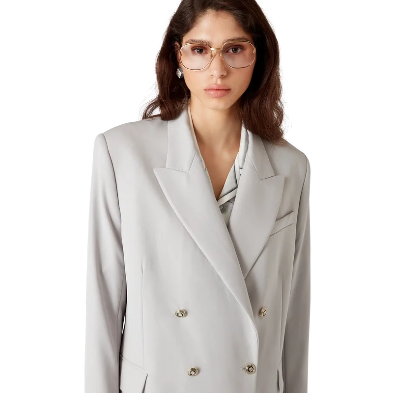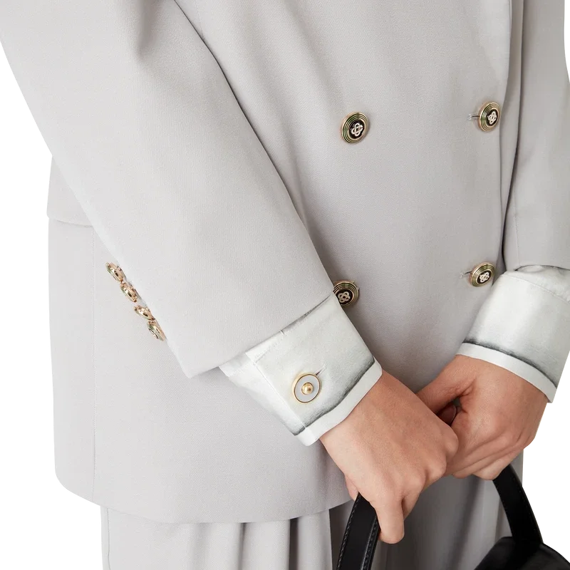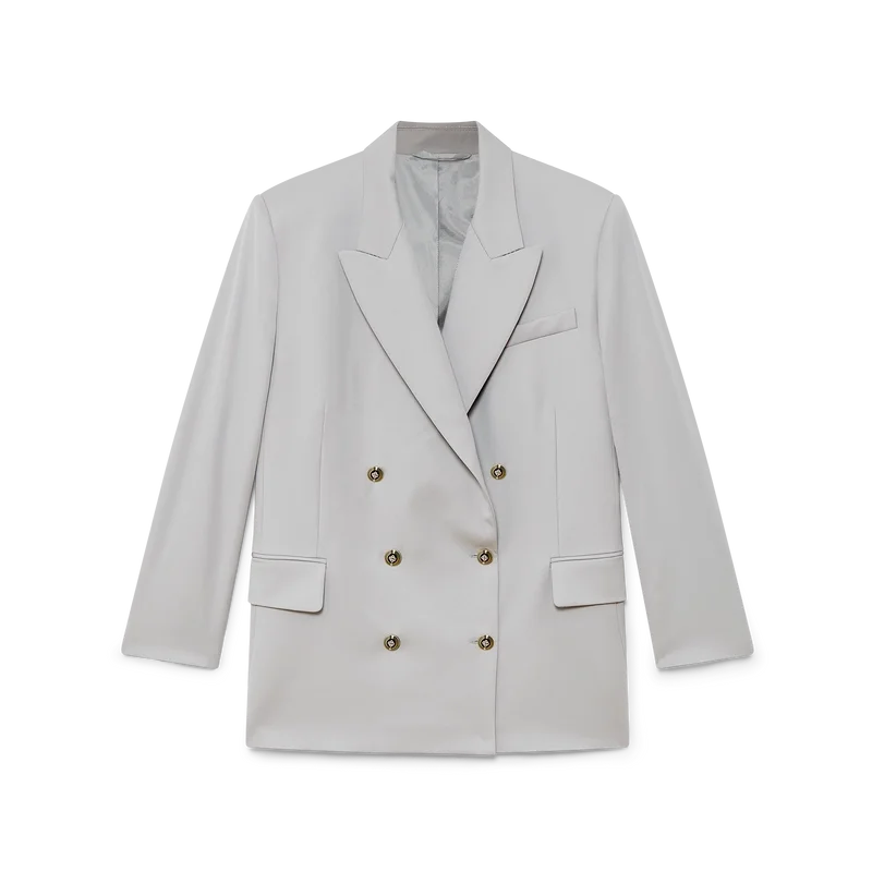 Der Oversized-Blazer aus Wolle ist ein Zweireiher, inspiriert von Pat Riley; der transformative Einfluss, den der legendäre Lakers-Trainer auf den Basketballstil der 80er und 90er Jahre hatte, spiegelt sich in der maßgeschneiderten Sportbekleidung der Kollektion wider, die aus Schurwollstoff gefertigt ist. Abgerundet durch Spitzrevers, Knopfleiste, flache CC-Emailleknöpfe, eine Brusttasche mit Paspel und Pattentaschen vorne.
