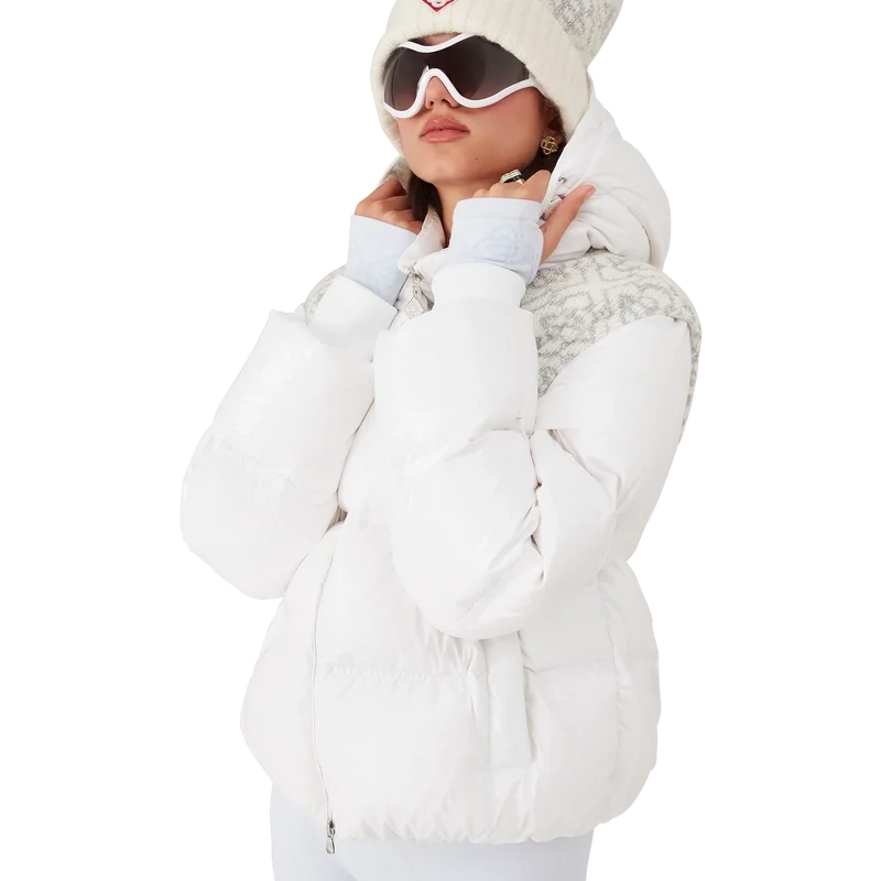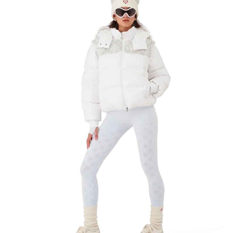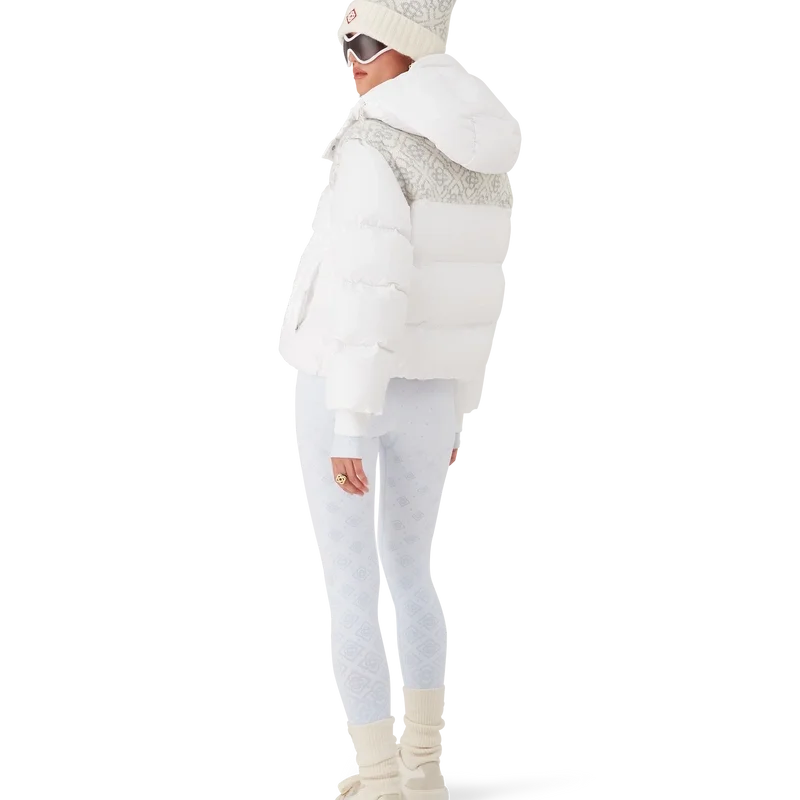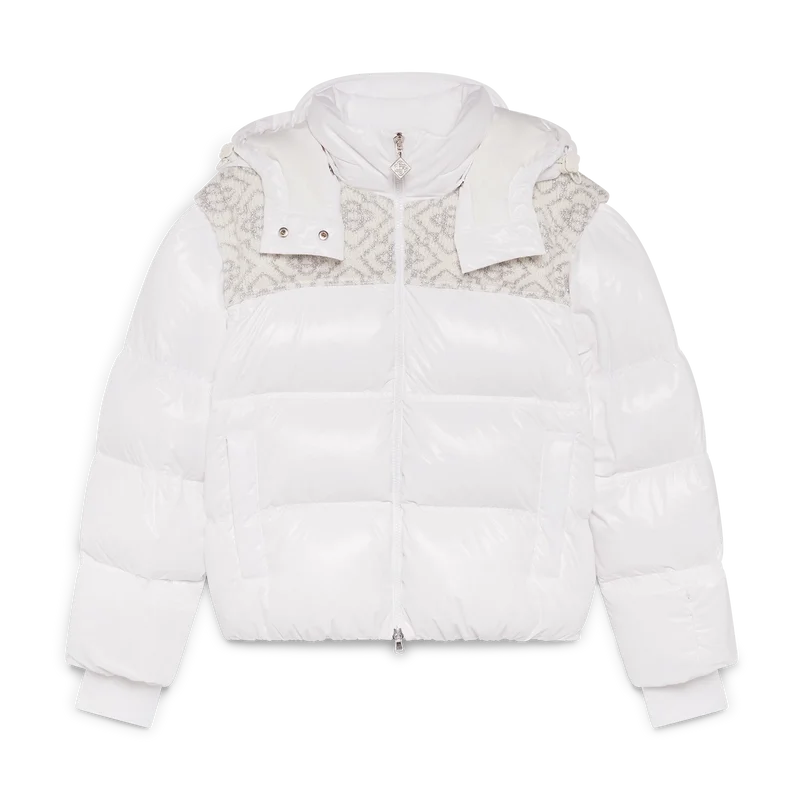 Die Ski-Pufferjacke ist ein raffiniertes Design der Oberbekleidung aus Ripstop-Nylon mit Daunenfüllung und kontrastierendem Monogramm-Jacquard-Einsatz über den Schultern. Inspiriert von der unberührten Schönheit der ländlichen Schneelandschaft Japans, wo hoch aufragende Gipfel und frischer Pulverschnee das Ackerland in endlose weiße Horizonte verwandeln. Abgerundet durch eine Kapuze mit Cc-Logo-Kordelstoppern und Kordelzugverschluss, einen Stehkragen für zusätzliche Wärme und Schutz vor den Elementen, einen Reißverschluss mit dem charakteristischen Diamant-Logo-Reißverschlusszipper des Hauses, Fronttaschen mit Reißverschluss, verstellbare Manschettenbänder mit Markenlogo sowie elastischen Saum und Manschetten.