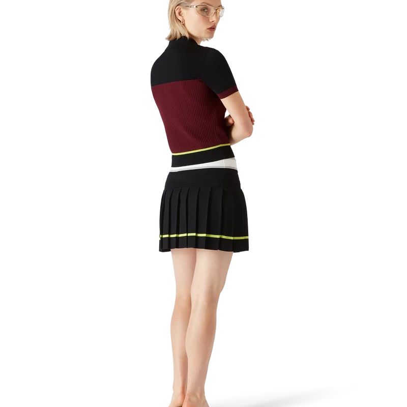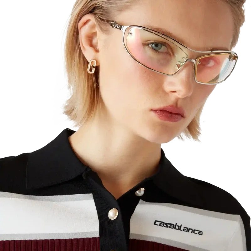 Das gestreifte Kurzarm-Poloshirt besticht durch ein raffiniertes Design mit klassischer Strickkonstruktion; die Silhouette verkörpert zurückhaltende Eleganz mit einer schmalen Passform. Abgerundet wird das Design durch einen gerippten Kragen, eine Knopfleiste und die charakteristischen, goldumrandeten Perlmuttknöpfe.