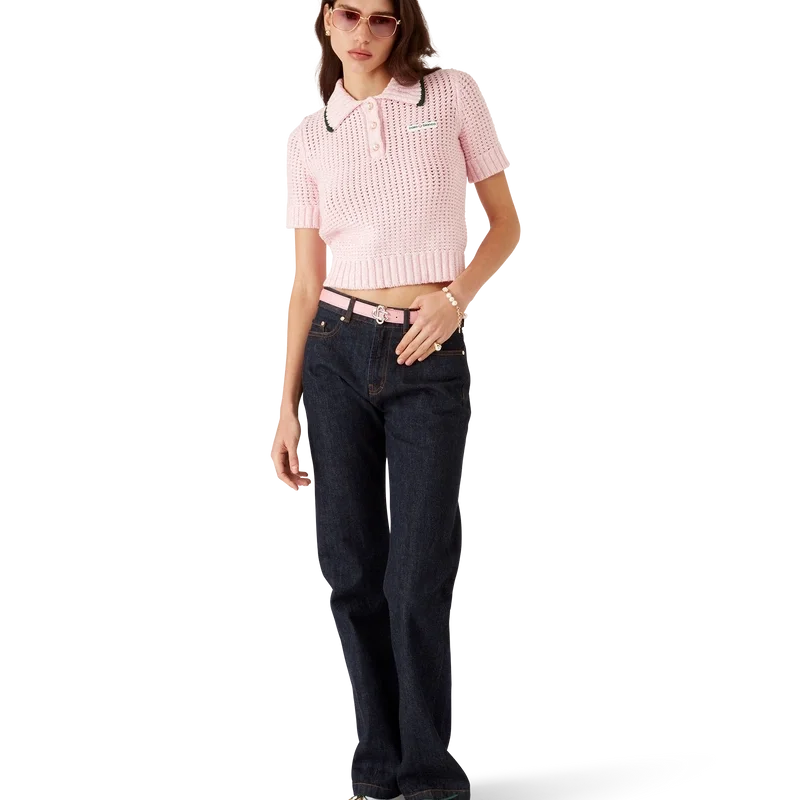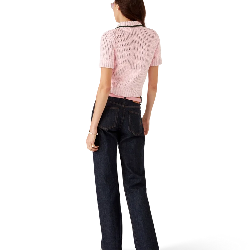 Das Moulina-Poloshirt ist ein klassisches Design aus Moulina-Baumwollstoff. Mit Knopfleiste, charakteristischen goldumrandeten Perlknöpfen, geripptem Kragen, Manschetten, Saum und Knopfleiste.