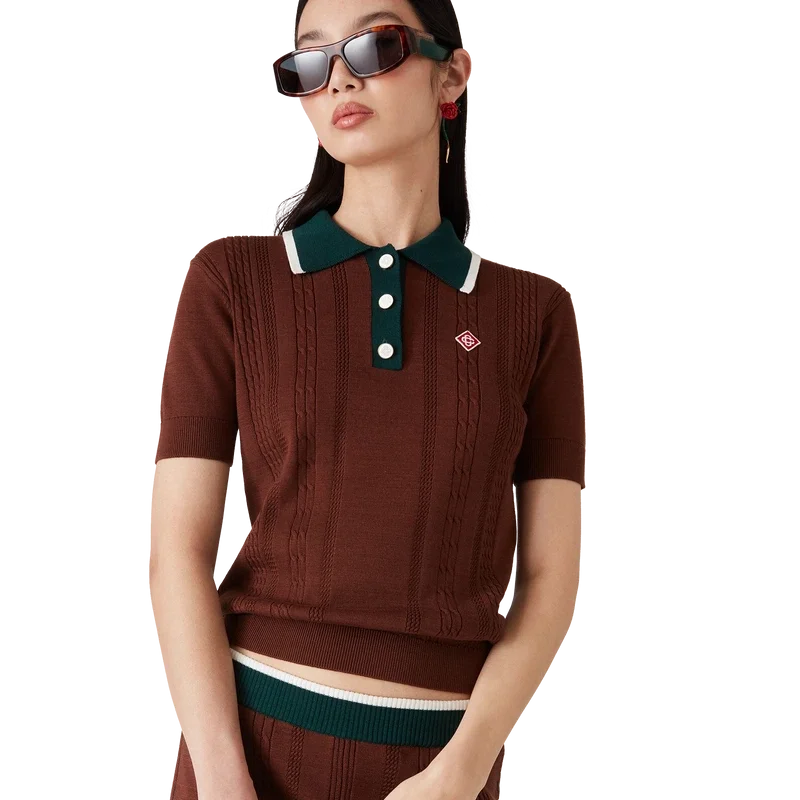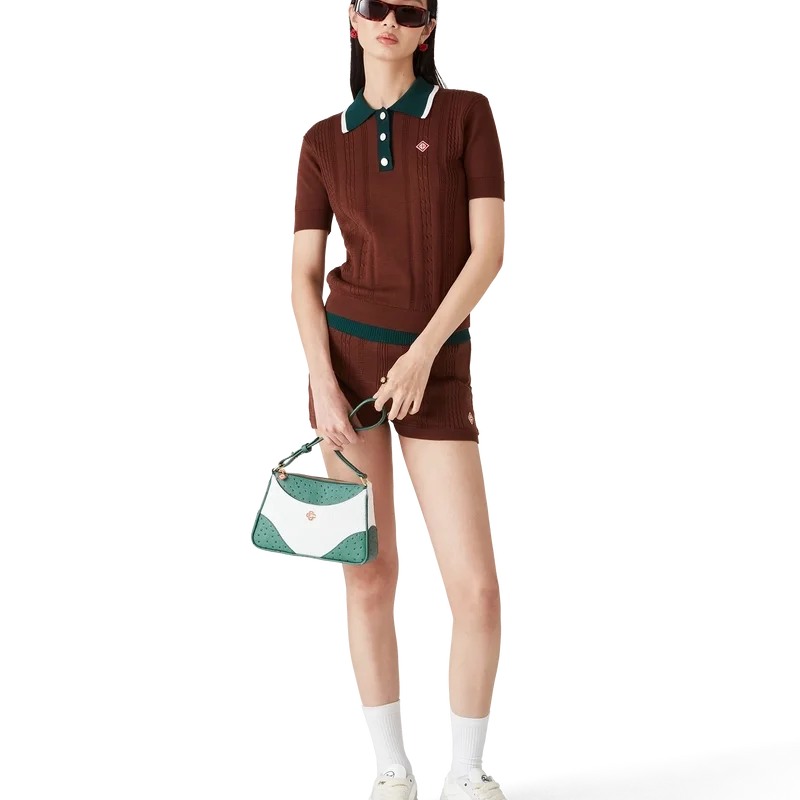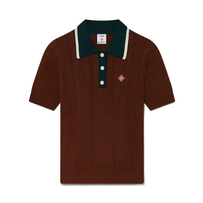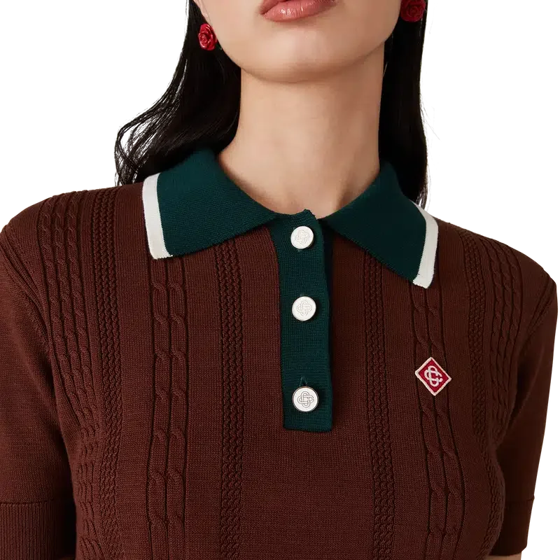 Das Poloshirt mit Zopfmuster ist ein kurzärmeliges Modell aus gestricktem Baumwollstoff mit dem charakteristischen Rautenlogo des Hauses. Abgerundet wird es durch flache Cc-Logo-Knöpfe, eine Knopfleiste mit drei Knöpfen, eine kontrastierende Rippleiste und einen Kragen mit weißem Randdetail. Entworfen, um mit den dazu passenden Mini-Shorts mit Zopfmuster getragen zu werden.
