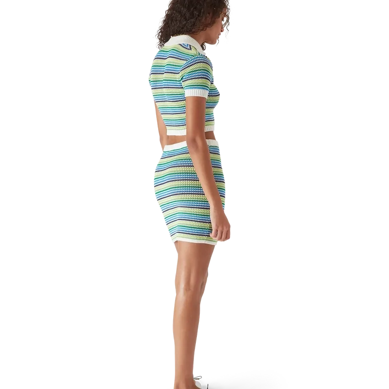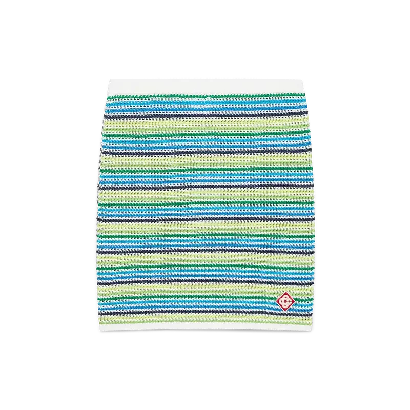 Der gestreifte Rock ist ein Minirock mit einer figurbetonten Silhouette und durchgehend gestreiftem Muster. Abgerundet durch das charakteristische Diamant-Logo des Hauses, einen gerippten, elastischen Bund und gerippte Saumdetails. Entworfen, um mit dem passenden gestreiften Poloshirt getragen zu werden.