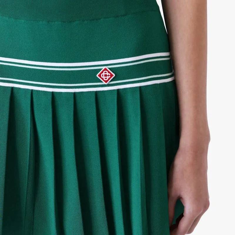 Der grüne plissierte Strick-Minirock ist ein raffiniertes Design mit dem charakteristischen Rautenlogo des Hauses. Abgerundet wird er durch eine Passe mit Streifendetails und einen plissierten Einsatz mit horizontal gestreiften Saumdetails für eine feminine Silhouette.