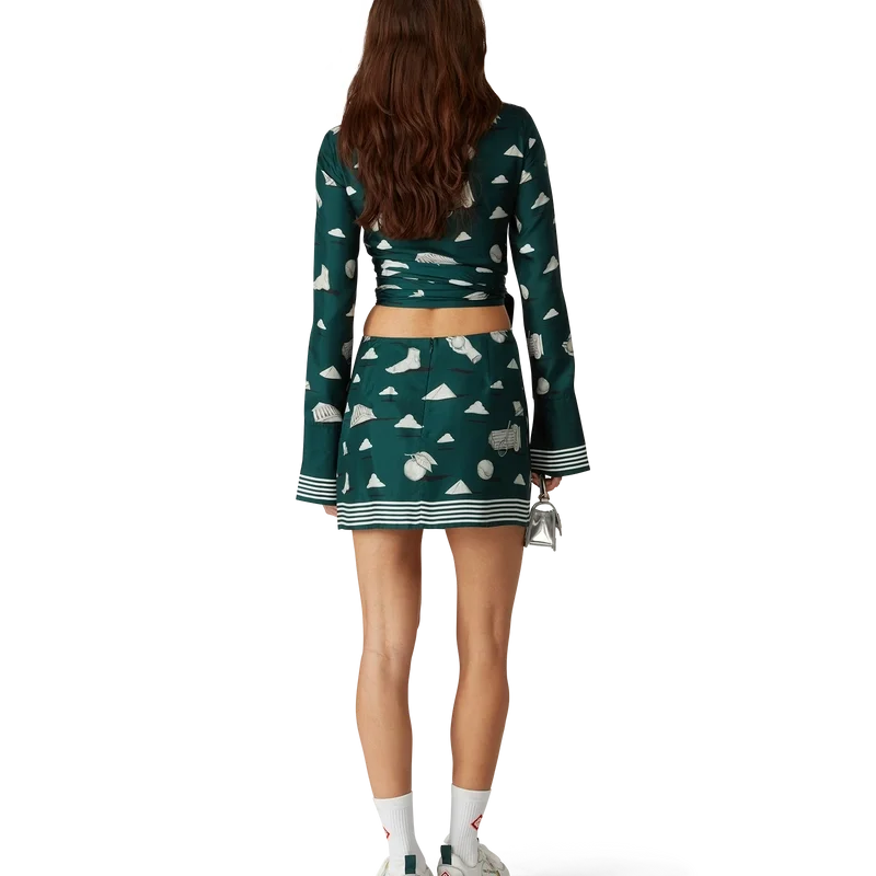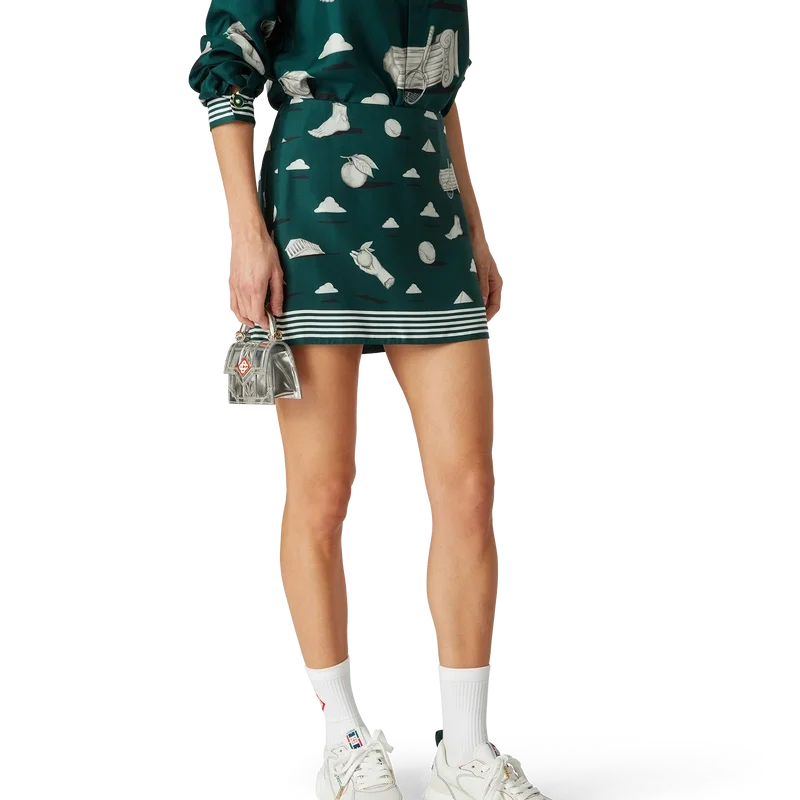 Der Metaphysical Mini-Seidenrock ist ein durchgehend bedrucktes Design aus Seidentwill mit einem sich wiederholenden Trompe-l’œil-Muster im Steineffekt und dezenten Designelementen. Abgerundet durch einen Reißverschluss und Streifendetails am Saum.