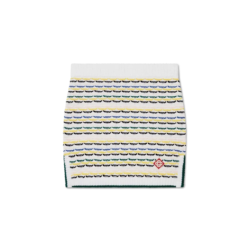 Der Minirock aus Baumwollstrick mit Tuck-Stich ist ein kurzes Modell aus Baumwollstoff. Mit elastischem Rippenbund, Seitenschlitzen und Saum mit kontrastierenden Kantenverzierungen.