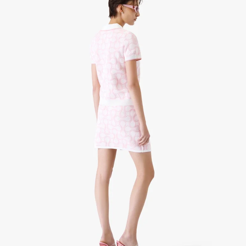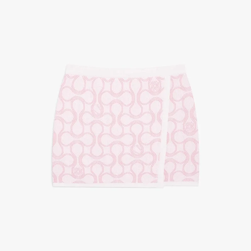 Der Optic Drop Wrap Minirock ist ein raffiniertes, gewickeltes Strickdesign mit dem saisonalen Artwork in der Bourgeois-Farbgebung des Hauses. Abgerundet durch einen elastischen Bund und elegante Wickeldetails. Entworfen, um mit dem passenden Poloshirt getragen zu werden.