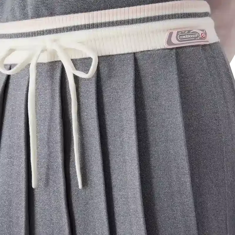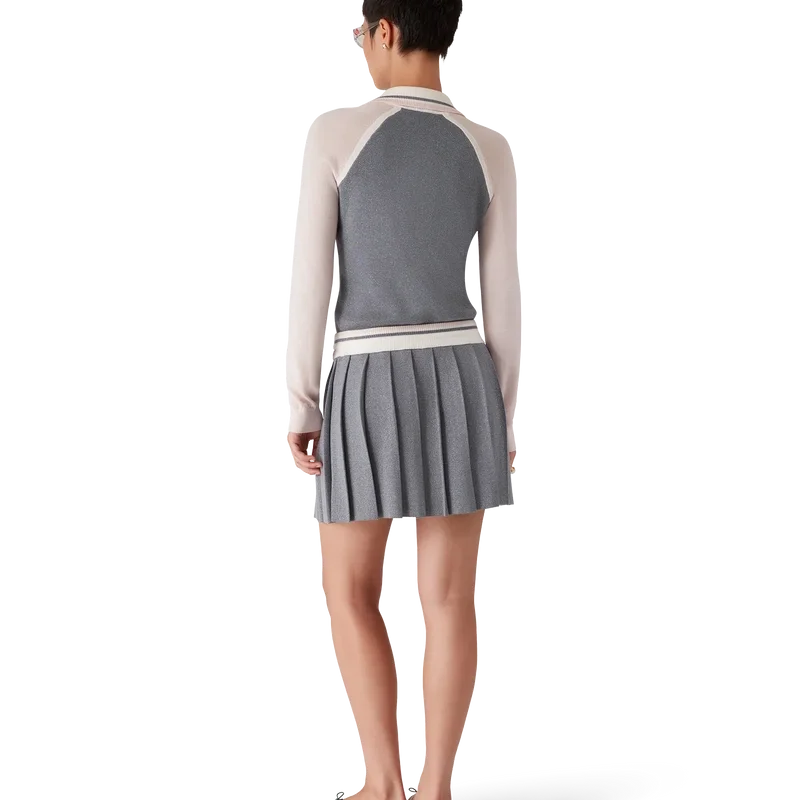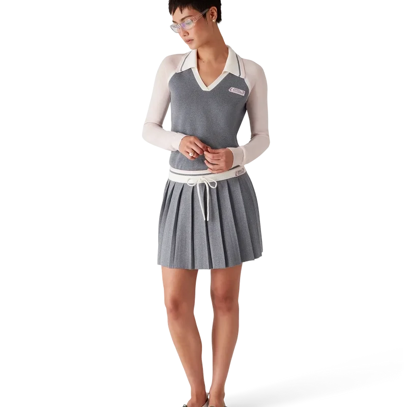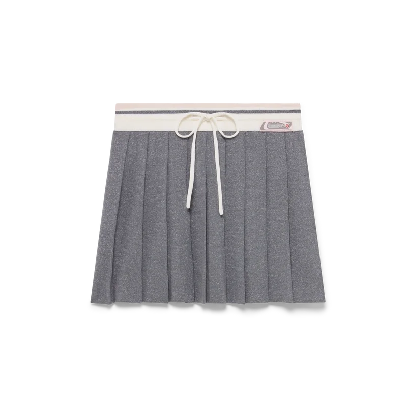 Der Merino-Strick-Tennisrock ist ein klassisches Design aus Merinowolle. Mit plissiertem Einsatz, kontrastierendem geripptem Bund und Kordelzug.