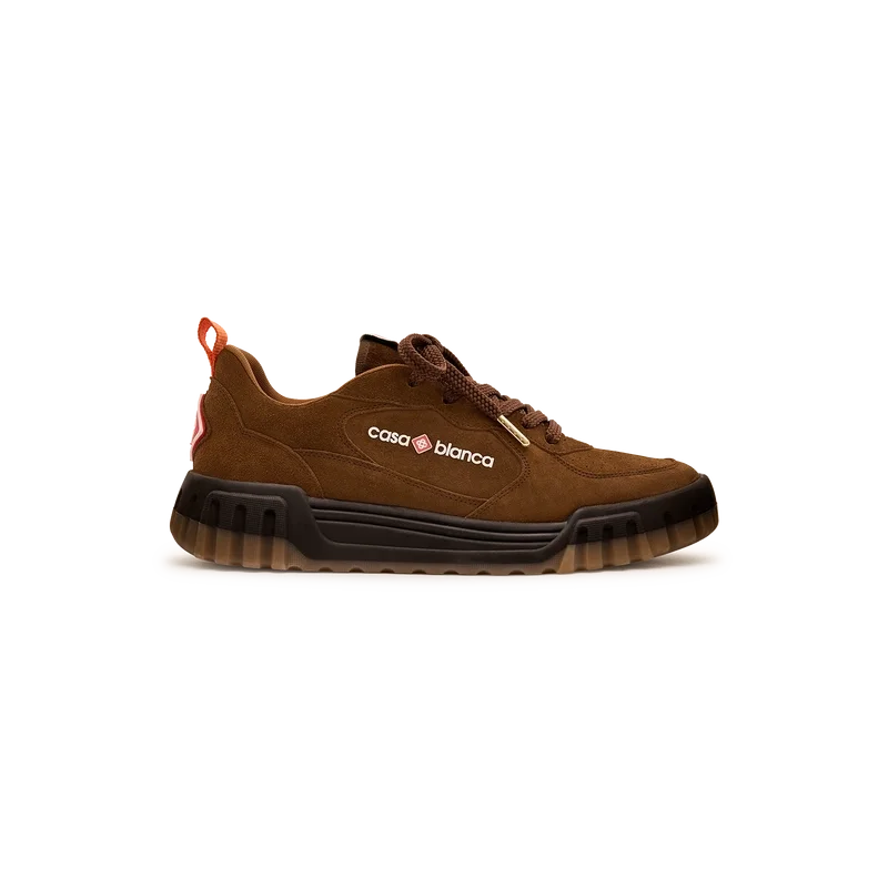 Die Designsprache des Court Sneakers spiegelt die ikonischen Silhouetten der 90er Jahre wider. Die Farben, die sich über die gesamte Gummisohle ziehen, sind eine Kombination aus den raffinierten Codes des Tennis und der klassischen Architektur und schaffen eine einheitliche Farbpalette über den gesamten Schuh hinweg, wobei der Fokus auf Primärfarben liegt, die durch Tennisweiß abgesetzt werden, um eine sportlich orientierte Farbgeschichte zu schaffen.Das Obermaterial des Schuhs zeichnet sich durch integrierte, fließende Panel-Linien aus, die an die ikonischen Silhouetten der 90er Jahre anknüpfen. Das markante Casablanca-Branding ist durchgehend sichtbar, einschließlich des charakteristischen Diamantmotivs der Marke an der Ferse, des seitlichen Silikon-Wordmarks sowie des gewebten Zungenlabels und der Einlegesohle mit Tennisplatz-Motiv, die dem Schuh seinen Namen „Court“ geben.