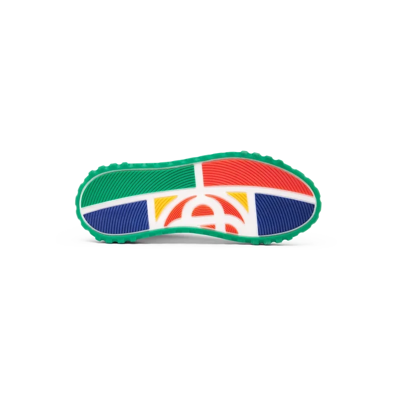 Das Design des Court Sneakers spiegelt die ikonischen Silhouetten der 90er Jahre wider. Die Farben der Gummisohle sind eine Kombination aus den raffinierten Codes des Tennissports und der klassischen Architektur und schaffen eine einheitliche Farbpalette für den gesamten Schuh, wobei der Fokus auf Primärfarben liegt, die durch Tennisweiß abgesetzt werden, um eine sportlich orientierte Farbgeschichte zu schaffen.