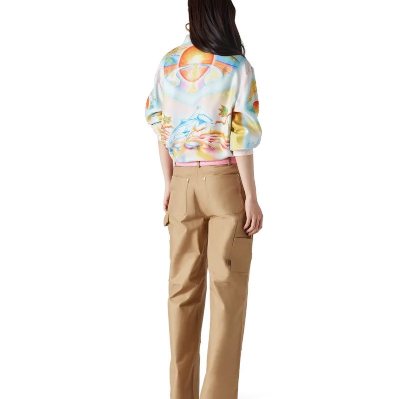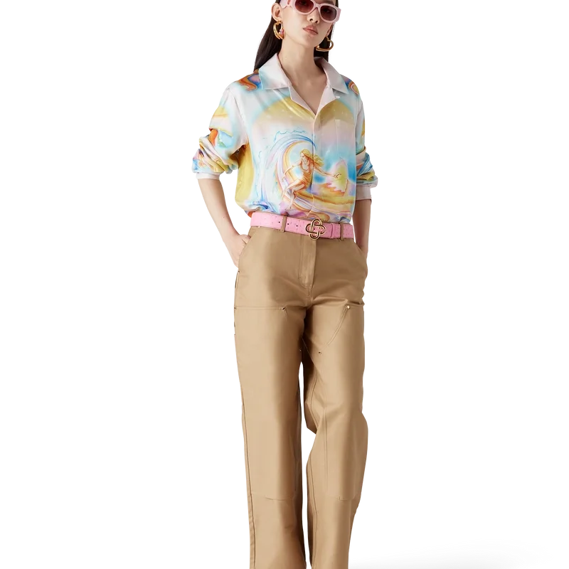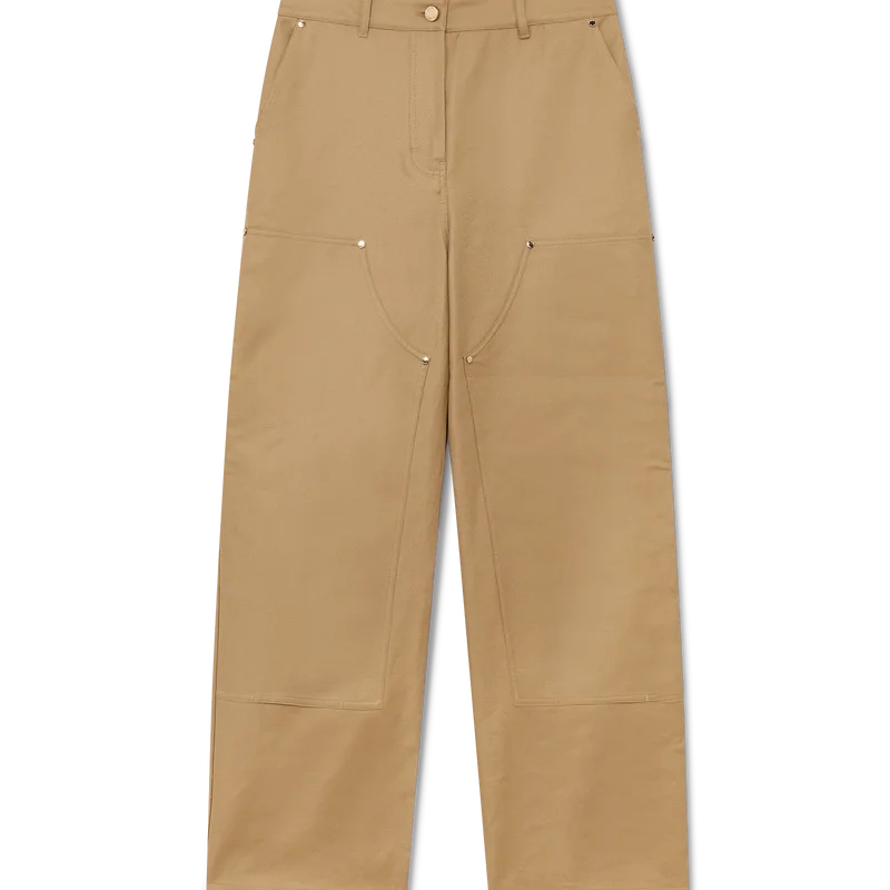 Die Arbeitshose aus Baumwolle hat ein gerades Bein und ist aus Baumwoll-Drillich gefertigt. Sie verfügt über einen Bund, Gürtelschlaufen, Stoffapplikationen an den Oberschenkeln, Vordertaschen, eine aufgesetzte Gesäßtasche und vergoldete Markenbeschläge.
