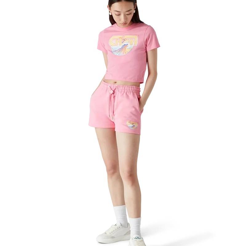 Die Casa Surf Sweatshorts sind ein bedrucktes Design aus Bio-Baumwollstoff und zeichnen sich durch ein charakteristisches Motiv aus, das von vintage, sonnengebleichten Surfbrettern aus den 70er Jahren inspiriert ist. Abgerundet durch einen elastischen Bund, einen Kordelzugverschluss, einen Interlocking-CC-Logo-Knauf, schräge Vordertaschen und eine aufgesetzte Gesäßtasche.