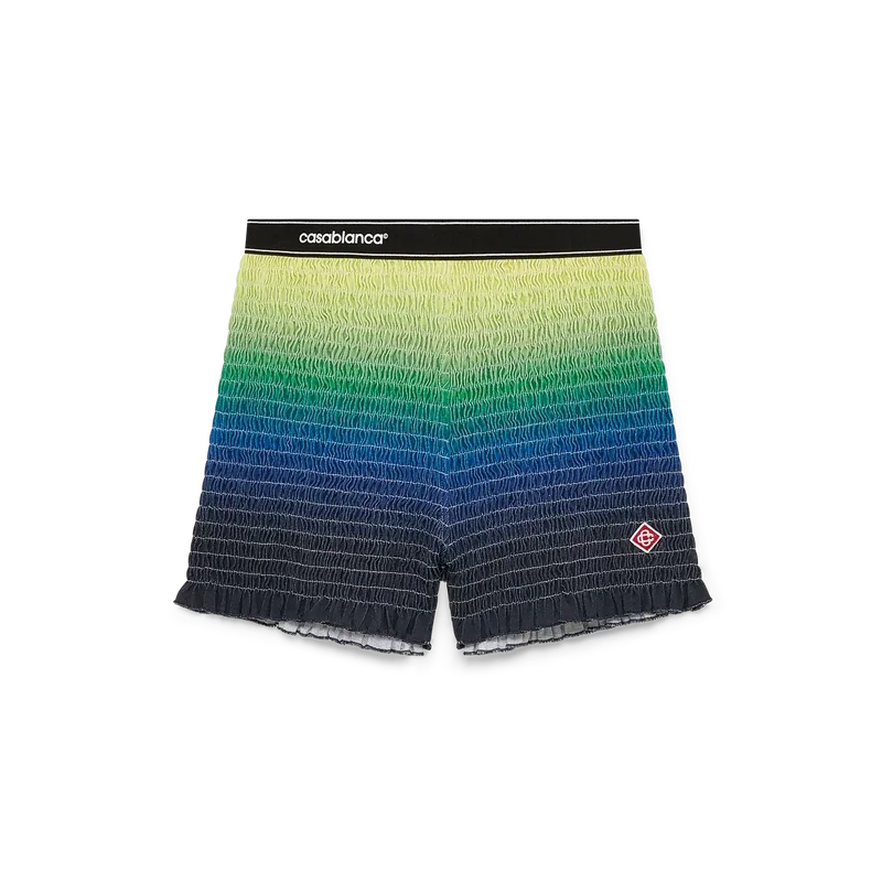 Die Gradient Shirred Shorts sind ein kurz geschnittenes Modell mit dem saisonalen Farbverlauf und dem charakteristischen Rautenlogo des Hauses. Abgerundet durch einen elastischen Bund mit Casablanca-Logo und Kantenverzierung sowie Rüschen am Saum.