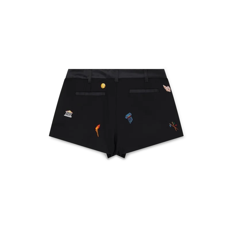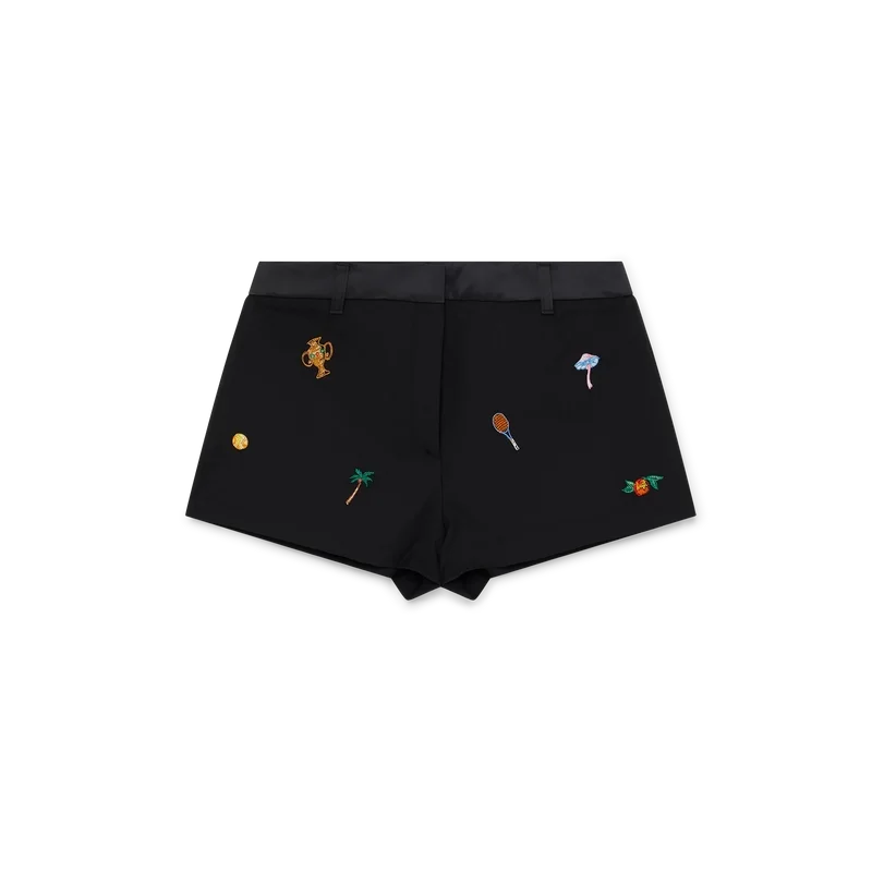 Maßgeschneiderte Shorts aus Wolle mit gesticktem Motiv