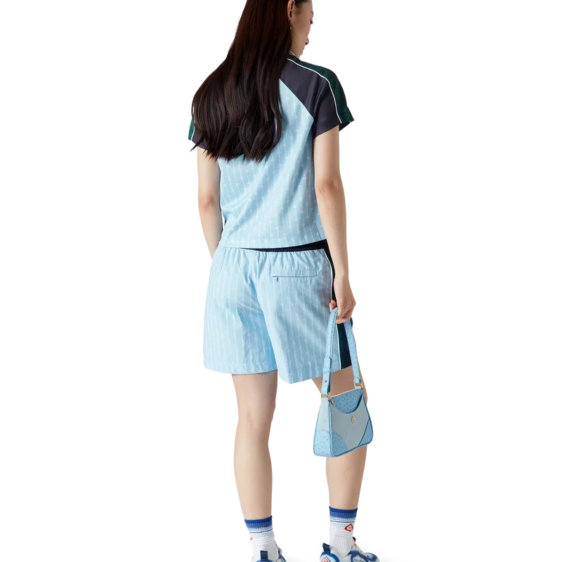 Die Pinstripe-Shorts sind ein Sportbekleidungsmodell aus Baumwollstoff mit dem ineinander verschlungenen Cc-Logo des Hauses. Abgerundet durch das charakteristische Diamant-Logo, einen elastischen Bund, einen Kordelzug mit goldenen Enden, seitliche Eingrifftaschen mit Reißverschluss, Streifenverzierungen an den Seiten und eine aufgesetzte Gesäßtasche mit Reißverschluss.