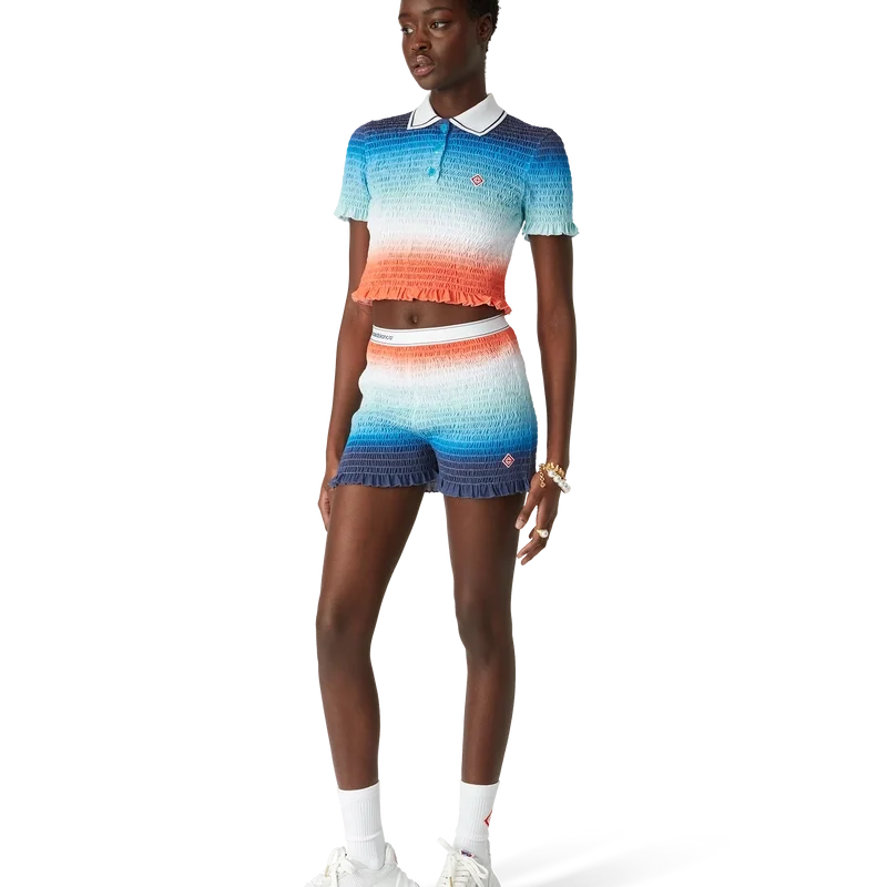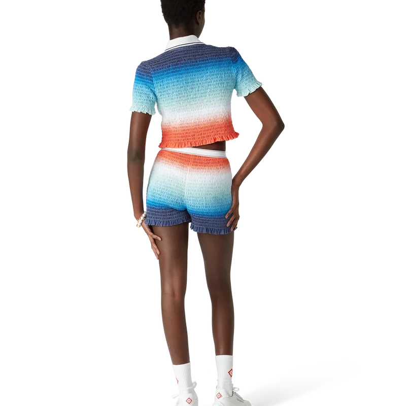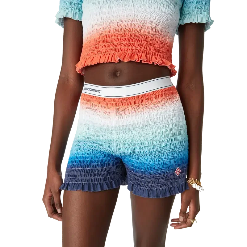 Die Gradient Shirred Shorts sind eine rundum bedruckte Shorts, die das charakteristische Rautenlogo des Hauses ziert. Abgerundet durch einen elastischen Bund mit Casablanca-Logo und Kantenverzierung sowie Rüschen am Saum.