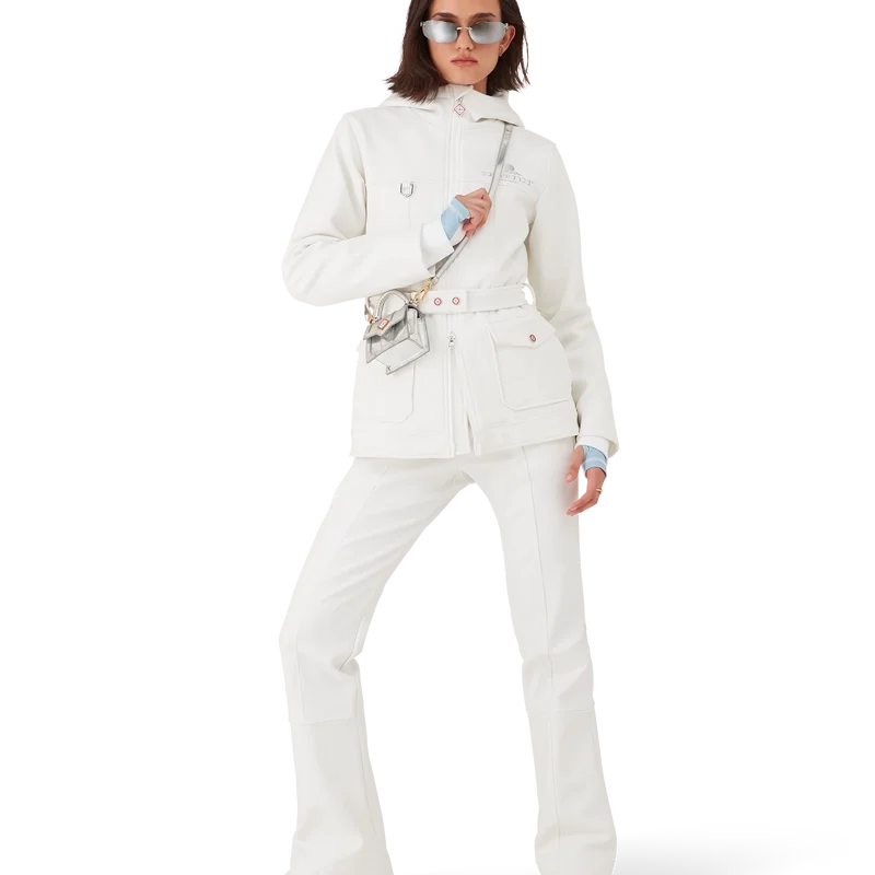 Die Skihose ist ein raffiniertes Apras-Sport-Design aus technischem Fleece-Stoff in Weiß, inspiriert von den weichen Texturen der schneebedeckten Landschaft Japans. Hier schaffen unberührte alpine Landschaften und natürliche Materialien ein harmonisches Design.
