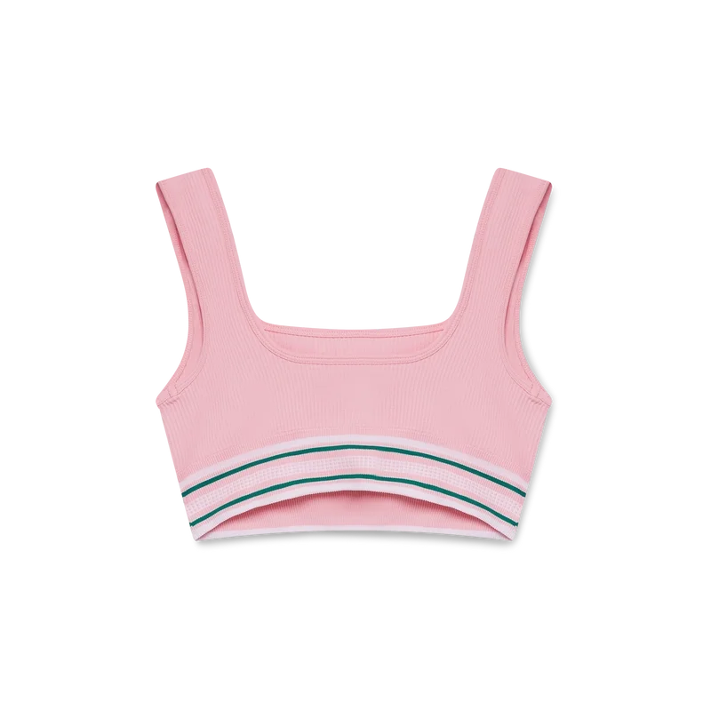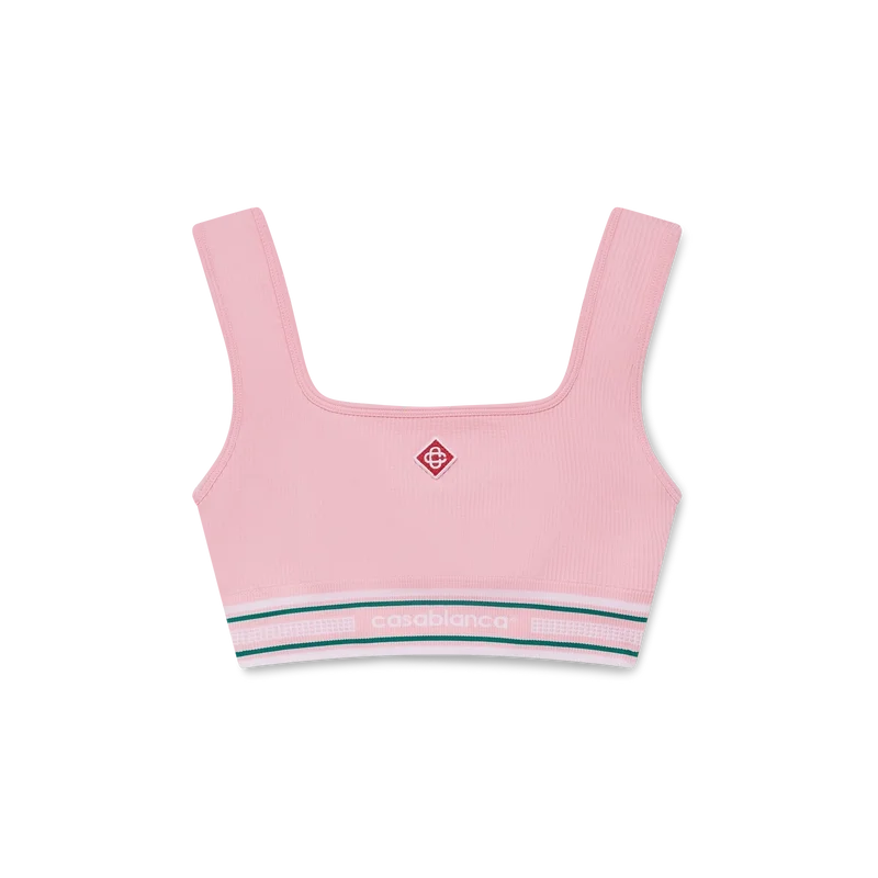 Die Casablanca Bralette ist ein ärmelloses, von Sportbekleidung inspiriertes Design mit dem charakteristischen Diamant-Logo des Hauses in der Mitte, gefertigt aus einem Stretchstoff. Abgerundet durch ein elastisches Band mit dem Casablanca-Logo des Hauses, Träger, Einsätze und einen U-Ausschnitt.