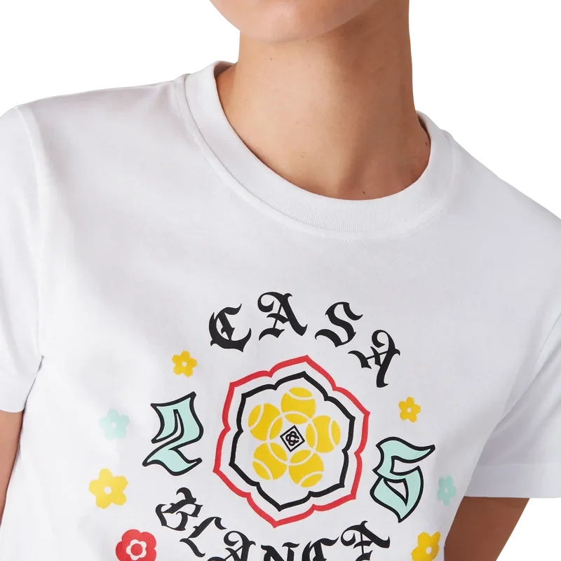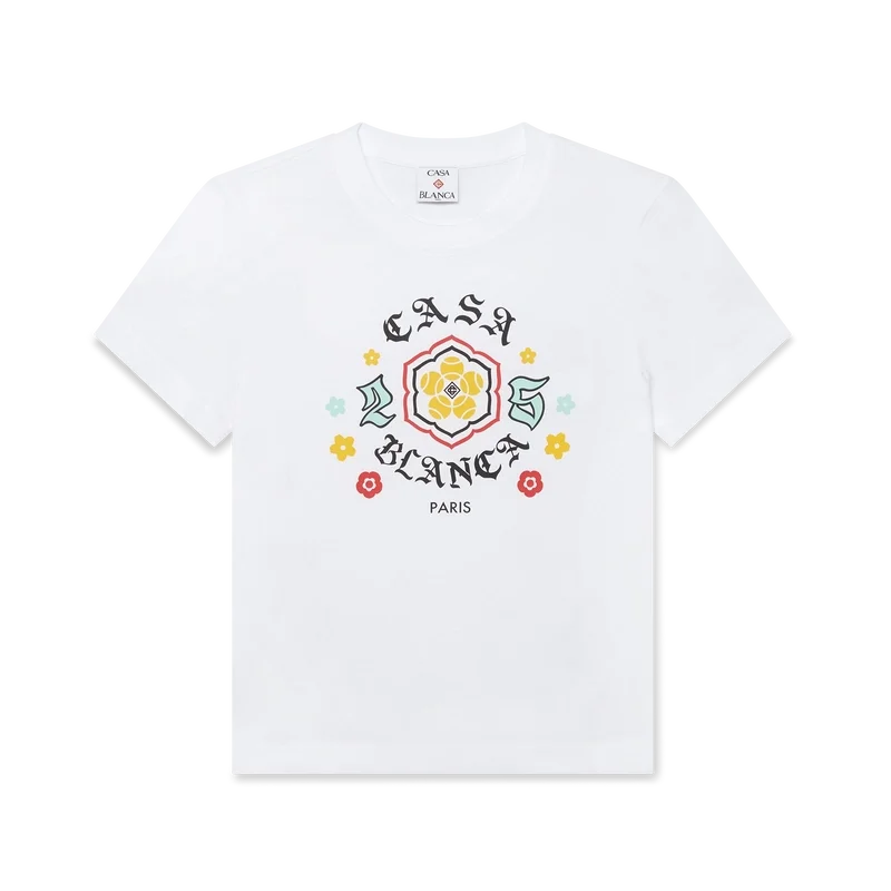 Das Emblem Fitted T-Shirt ist ein kurzärmeliges Design mit dem Artwork dieser Saison, bei dem wir uns für eines unserer Hauptthemen von der japanischen Subkultur der BōSōZoku inspirieren ließen. Der Kontrast zwischen grafischen Elementen und Text erinnerte uns sehr an Casablanca. Wir haben unsere eigene Interpretation der BōSōZoku-Kunst geschaffen und dabei Sätze integriert, die die Marke beschreiben, wie zum Beispiel „Looking at the Beauty of the World“. Das Layout ist unkonventionell, aber die Komposition ist sorgfältig ausbalanciert, was dem T-Shirt einen einzigartigen und dennoch harmonischen Charakter verleiht. Abgerundet wird es durch einen klassischen Rundhalsausschnitt.
