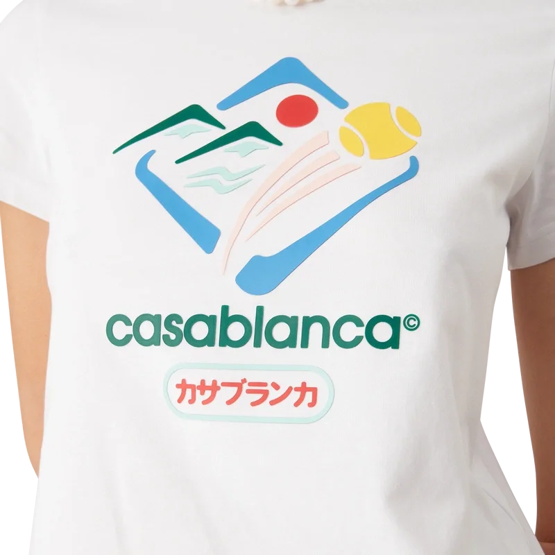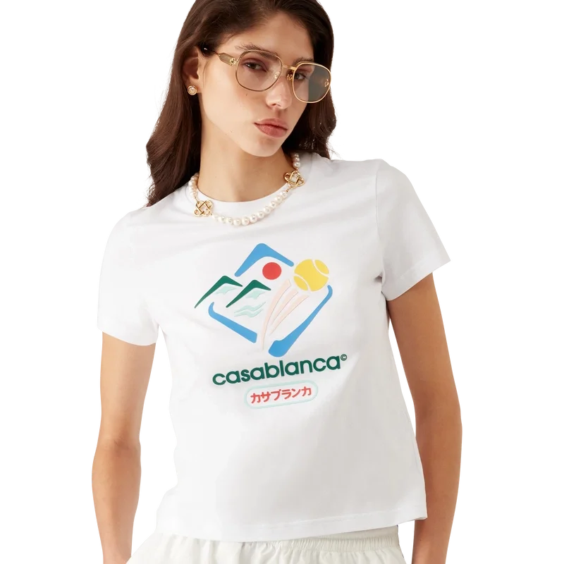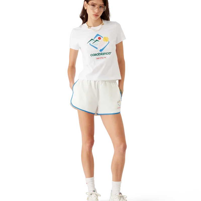 Das Montagne Sportif Cropped T-Shirt ist ein kurzärmeliges Modell aus Bio-Baumwolle mit dem saisonalen Motiv des Hauses. Mit klassischem Rundhalsausschnitt – für eine schmale Passform entworfen.