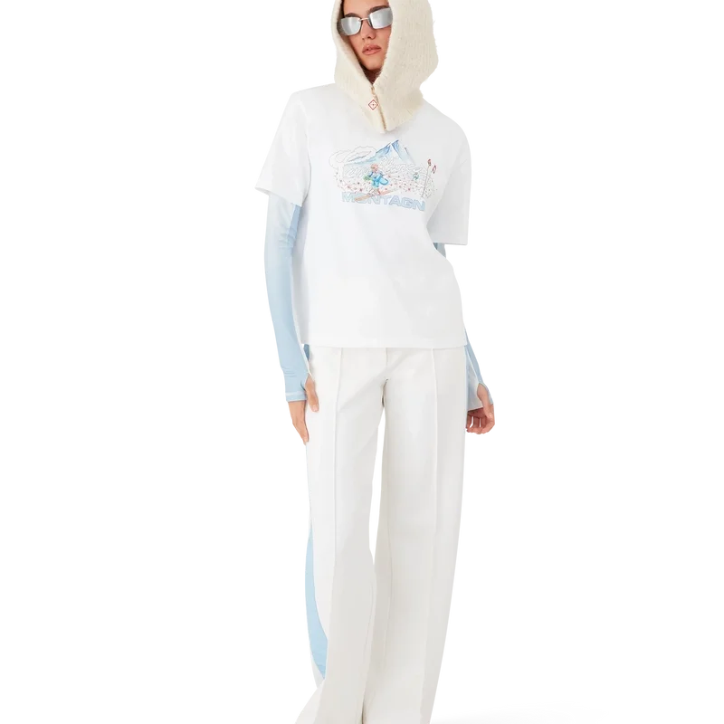 Das Ski-T-Shirt ist ein raffiniertes Apras-Sport-Design aus weißem Bio-Baumwolljersey, inspiriert von der minimalistischen Reinheit der schneebedeckten Landschaft Japans. Es greift die zurückhaltende Schönheit traditioneller dörflicher Ästhetik auf, wo klare Linien und natürliche Materialien ein zeitloses Design prägen, und verkörpert den Sport-Freizeit-Stil.