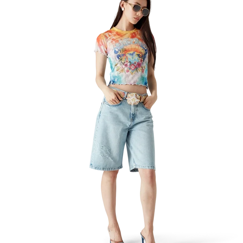 Das Surf Trip Tie-Dye-Mesh-T-Shirt ist ein bedrucktes Kurzarm-Modell aus Bio-Baumwolle und besticht durch ein charakteristisches Design, das von der Vintage-Surfkultur Malibus inspiriert ist. Es verwendet Typografie aus dieser Ära auf einem Tie-Dye-Hintergrund, der an die Hippie-Kultur anknüpft. Abgerundet wird das Design durch einen klassischen Rundhalsausschnitt.