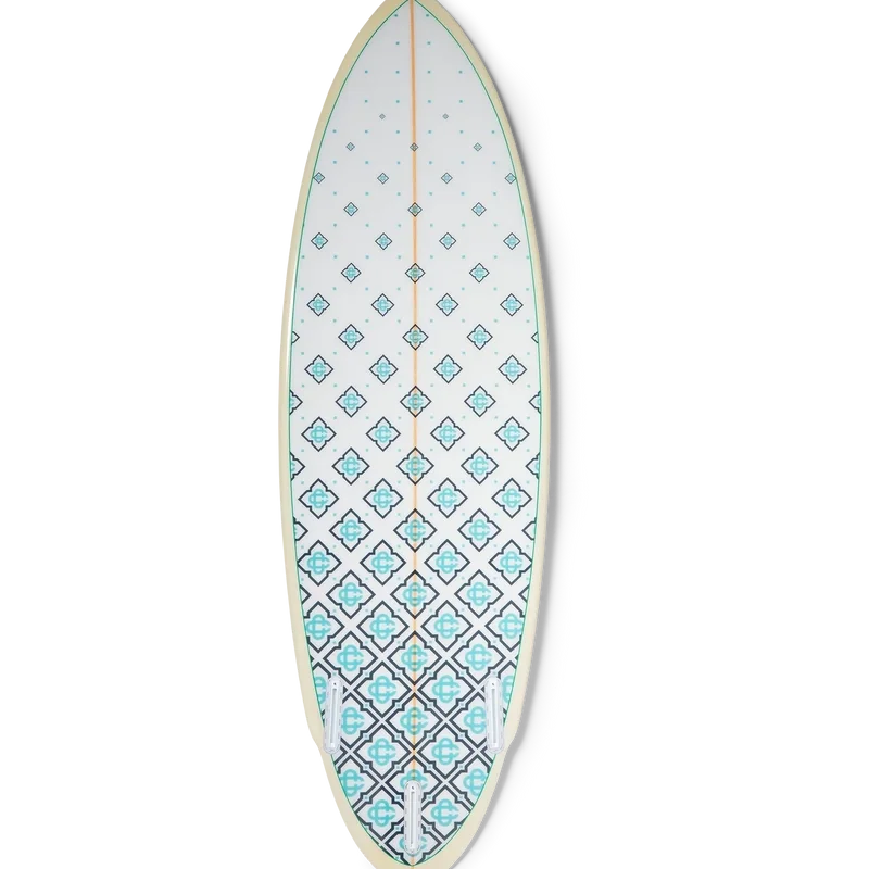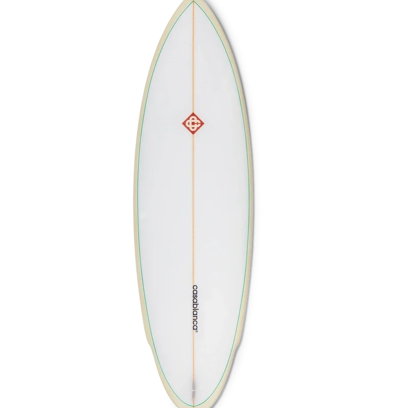 Das Casablanca-Surfboard ist aus hochwertigem Fiberglas, Polyurethanschaum und Polyesterharz gefertigt und verfügt über den charakteristischen Degrade-Monogramm-Aufdruck des Hauses auf der Unterseite sowie das Casablanca-Logo mit dem markanten Diamond Monogram auf dem Deck. Abgerundet wird es durch einen Holzstringer, ein weißes Deck mit mintgrünem Rand und hellgelben Rails. Das Casablanca-Surfboard misst 178,2 cm (von der Nase bis zum Heck) x 53 cm (von Rail zu Rail an der breitesten Stelle). Dieser Artikel wird ohne Finnen und Leash geliefert.