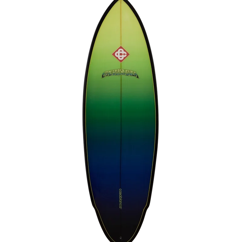 Das handgefertigte Casablanca Retro-Surfboard besticht durch ein raffiniertes Design mit dem Farbverlauf der Saison. Es besteht aus Polyurethanschaum mit einer Konstruktion aus Polyesterharz und Glasfaser. Abgerundet wird es durch mehrfarbige Farbverlaufsdetails und das Branding, das den gehobenen Ansatz des Hauses in Bezug auf Sport- und Freizeitcodes widerspiegelt. Das Casablanca-Surfboard misst 178,2 cm (von der Nase bis zum Heck) x 53 cm (von Rail zu Rail an der breitesten Stelle). Dieser Artikel wird ohne Finnen und Leash geliefert.