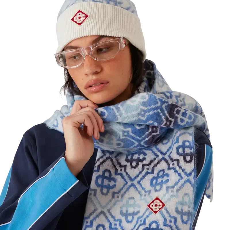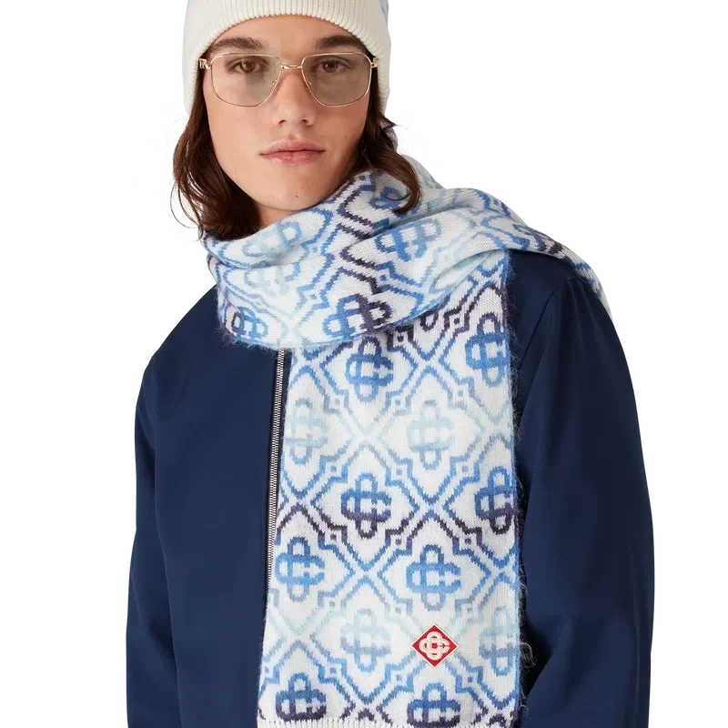 Der Space Dye Monogram Schal ist aus einer luxuriösen Wollmischung gefertigt und zeigt das charakteristische Diamond Monogram des Hauses, das aus Space-Dye-Garnen gefertigt ist, die Tiefe und Dimension erzeugen. Abgerundet durch gerippte Kanten.