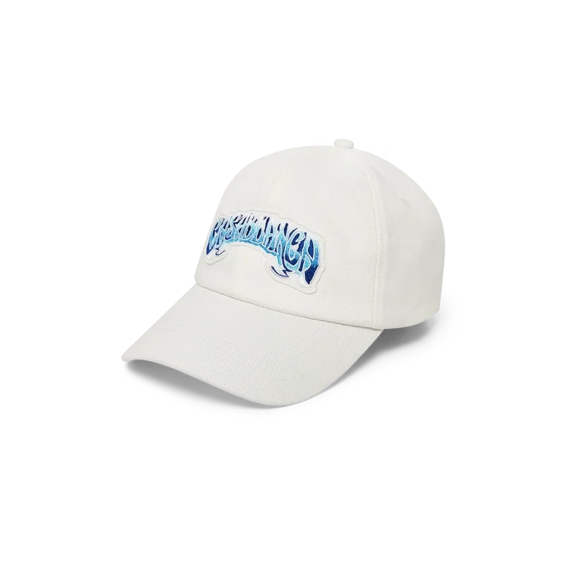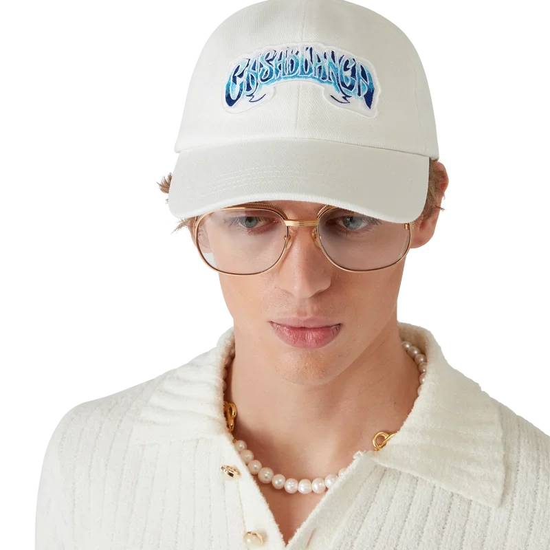 Die Blue Fade Cap ist eine klassische Baseballkappe aus Baumwollstoff mit handgezeichneter Typografie des Casablanca-Logos, inspiriert von der in Tattoos verwendeten gotischen Schriftart. Abgerundet durch einen Schirm und eine vergoldete, verstellbare Schnalle.