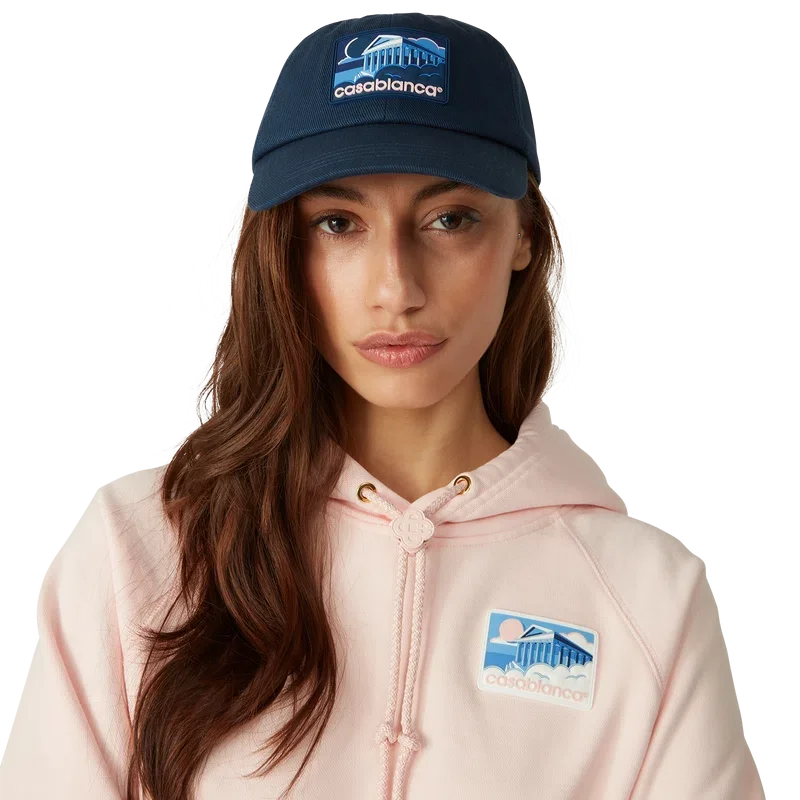 Die Greek Temple Cap ist eine klassische Baseballkappe aus Baumwollstoff mit einem Silikon-Aufnäher mit saisonalem Motiv. Abgerundet wird sie durch einen Schirm und eine vergoldete, verstellbare Schnalle.