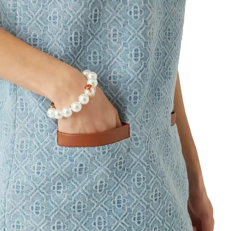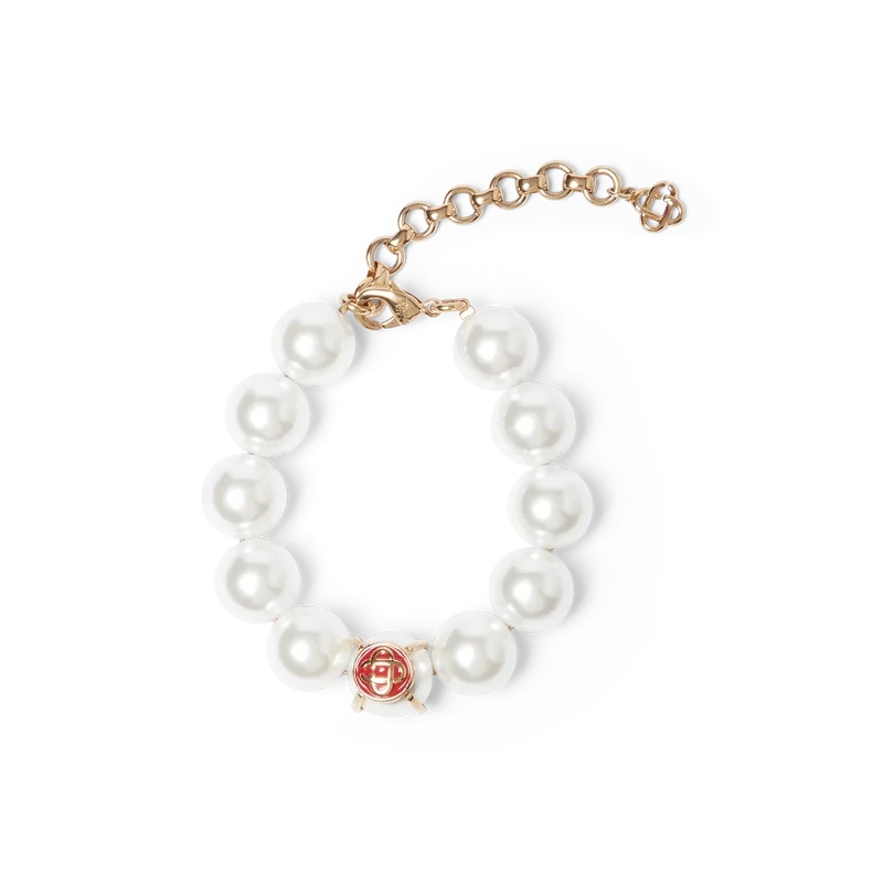 Das Caged Pearl Armband ist aus vergoldetem Messing und Glasperlen gefertigt und ziert das charakteristische Diamant-Logo des Hauses. Abgerundet durch eine vergoldete Kette und einen Karabinerverschluss – dieses Stück wird mit einer Geschenkbox, einem Staubbeutel mit Markenlogo und einer Produktbroschüre geliefert.
