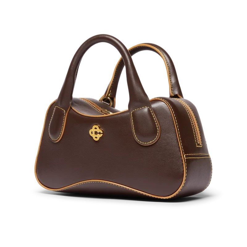 Die braune Louise Micro-Tasche ist aus italienischem Kalbsleder gefertigt und mit dem ineinander verschlungenen CC-Logo des Hauses auf hochwertigen Metallbeschlägen verziert. Ausgestattet mit Reißverschluss, einem verstellbaren, abnehmbaren Riemen, zwei Tragegriffen und einer Innentasche. Wird mit einem Staubbeutel mit Casablanca-Logo, einer Geschenkbox und einer Produktbeschreibung geliefert.