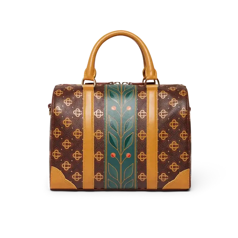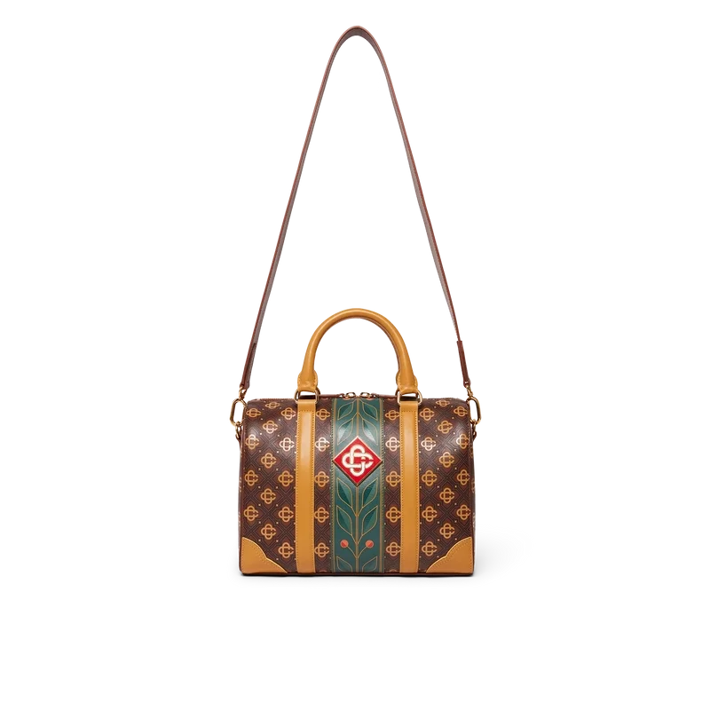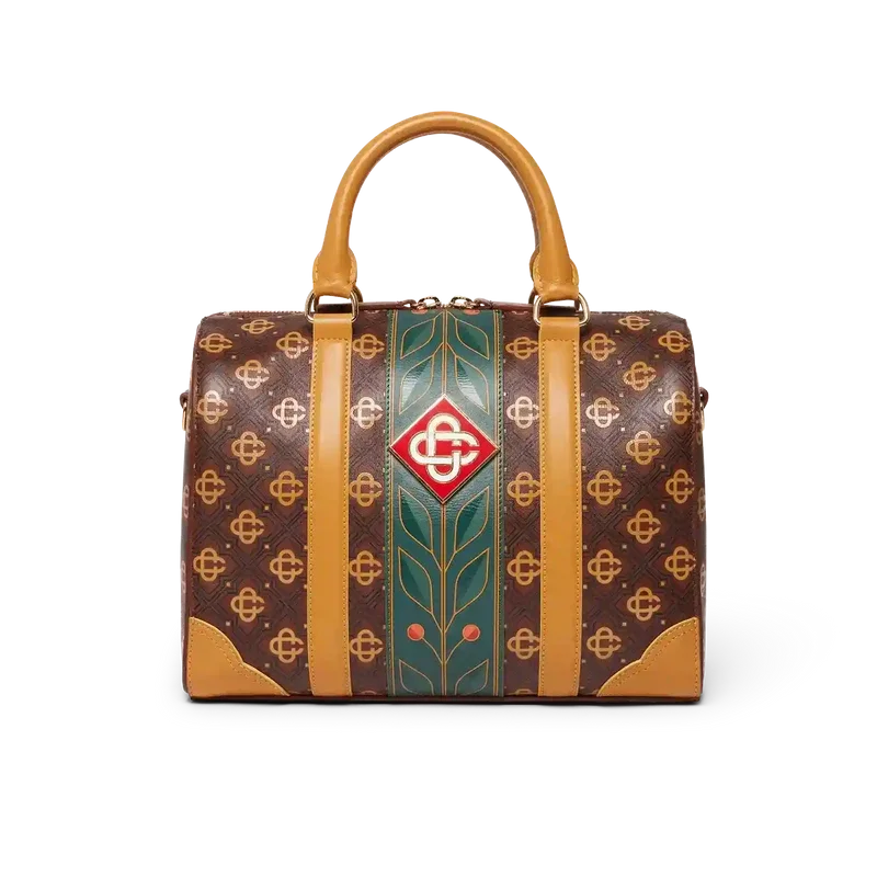 Die braune Mini Monogram Weekender-Tasche ist aus italienischem Leder gefertigt und an der Seite mit dem charakteristischen Rautenlogo des Hauses verziert. Abgerundet wird sie durch das charakteristische Lorbeerblatt-Motiv des Hauses, Tragegriffe, einen Reißverschluss, einen Schulterriemen und eine Innentasche. Im Lieferumfang enthalten sind eine Geschenkbox, ein Staubbeutel mit Markenlogo und ein Produktdetail-Handbuch.